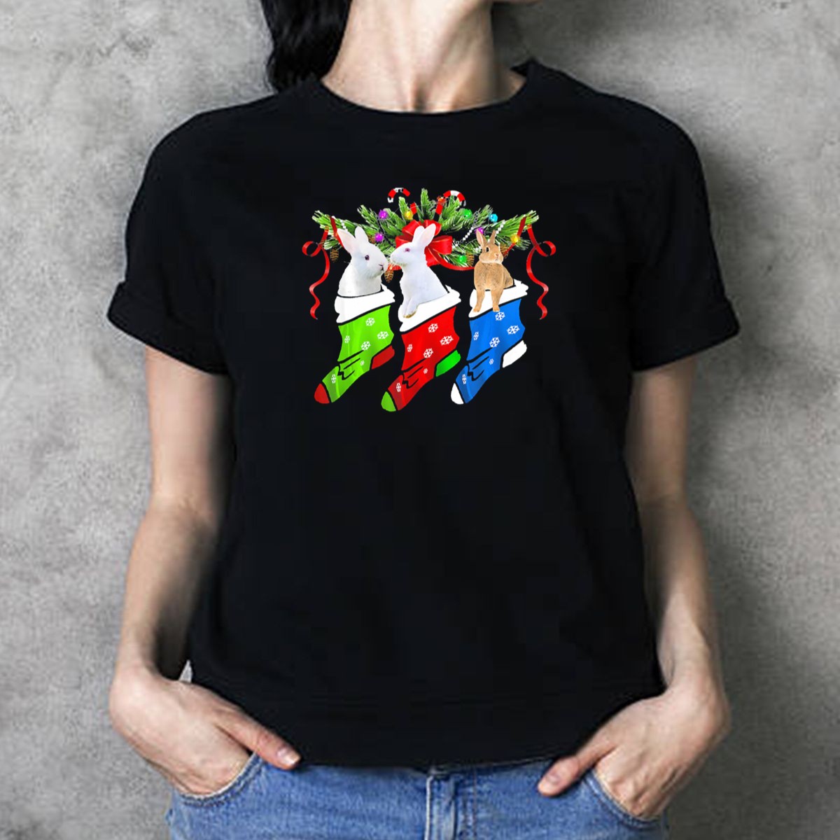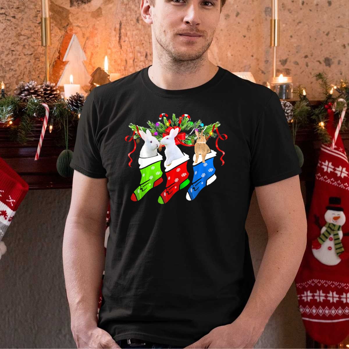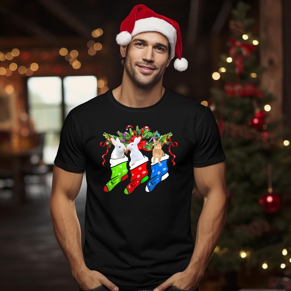 Celebrate the festive season with our Funny Three Rabbit in Colorful Christmas Sock with Candy Canes T-Shirt! Perfect for animal lovers and holiday enthusiasts alike, this playful design brings a cheerful touch to your casual wardrobe. Whether you’re attending a themed event, gathering with family, or simply enjoying a cozy day at home, this shirt adds a fun twist to your all-season attire. Made with care in the USA, it’s not just a shirt; it’s a statement of joy and creativity!