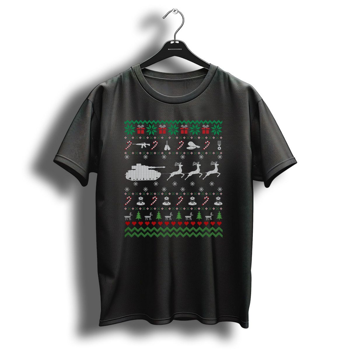 Celebrate the holiday season with a twist of humor and patriotism in our Funny Veteran Ugly Christmas Sweater T-Shirt! Perfect for veterans and supporters alike, this unique tee features a fun design that combines festive cheer with military flair. Ideal for casual gatherings, themed events, or just spreading joy during the holidays, this shirt brings comfort and a smile to any occasion.