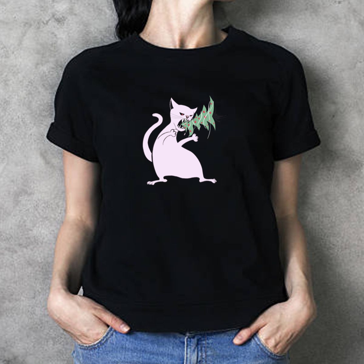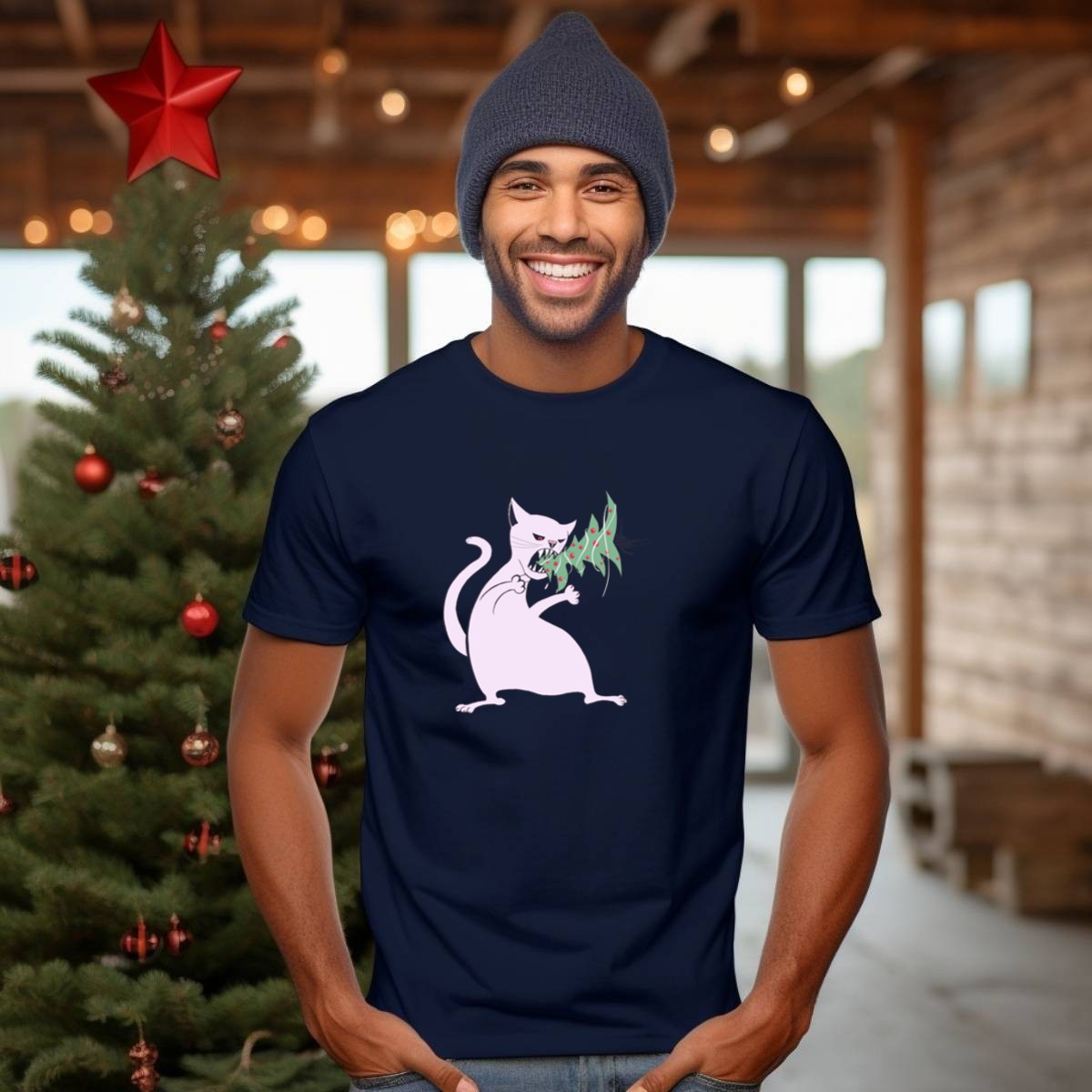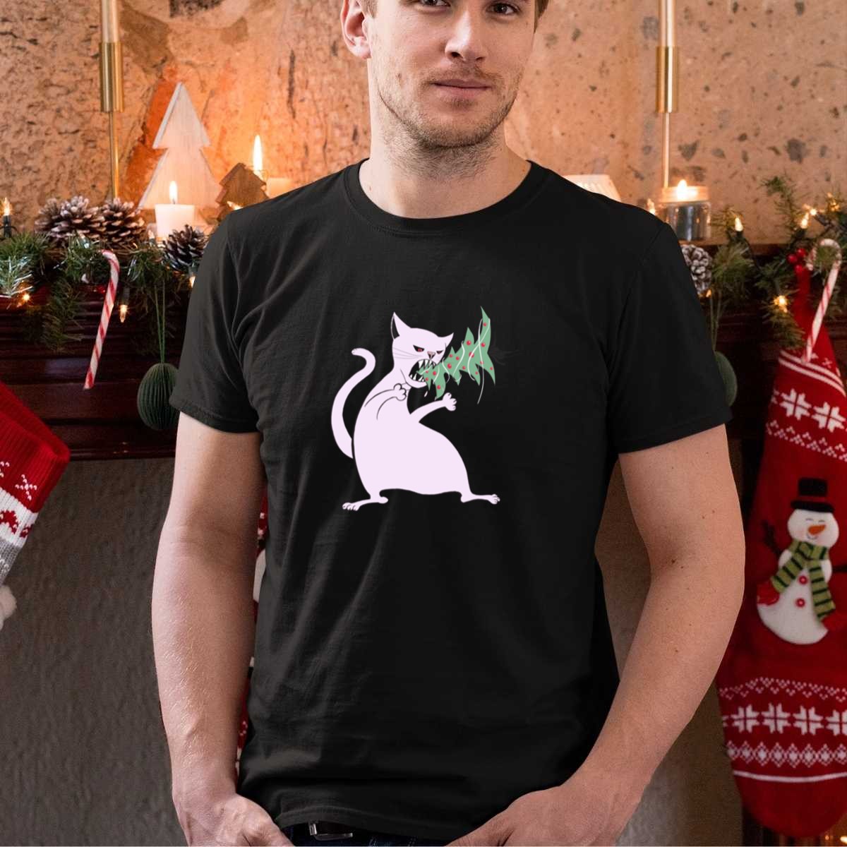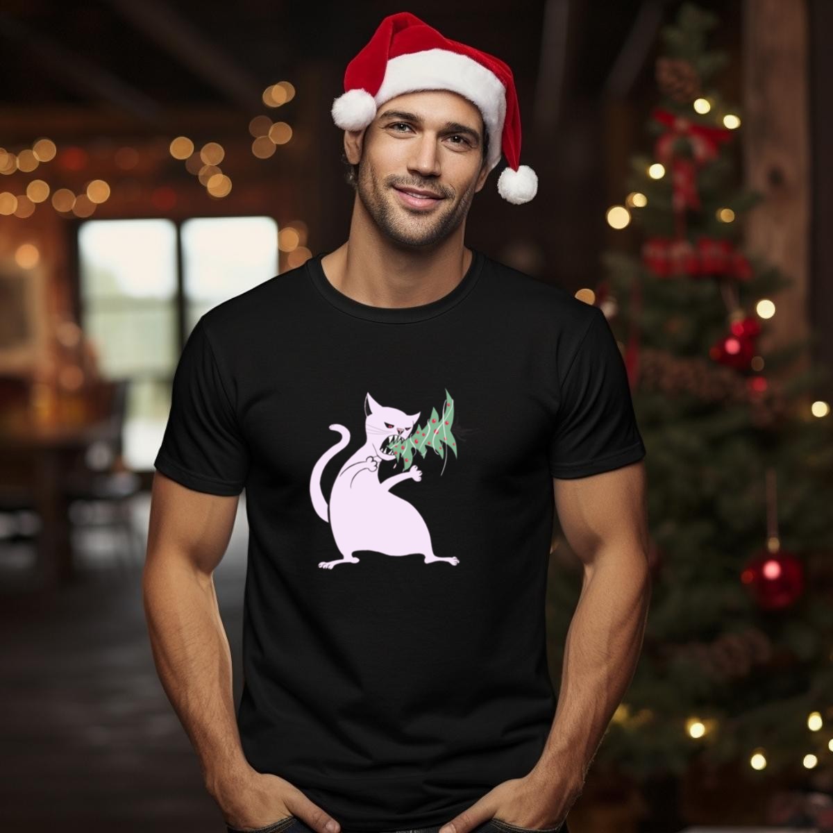 Get ready to spread some holiday cheer with our Funny White Cat Chomping On A Christmas Tree T-Shirt! This playful design is perfect for cat lovers and anyone who enjoys a good laugh during the festive season. Made for casual wear, themed events, or just a cozy day at home, this shirt is sure to be a hit at holiday gatherings. Show off your unique sense of humor with this fan-made design, proudly printed in the USA!