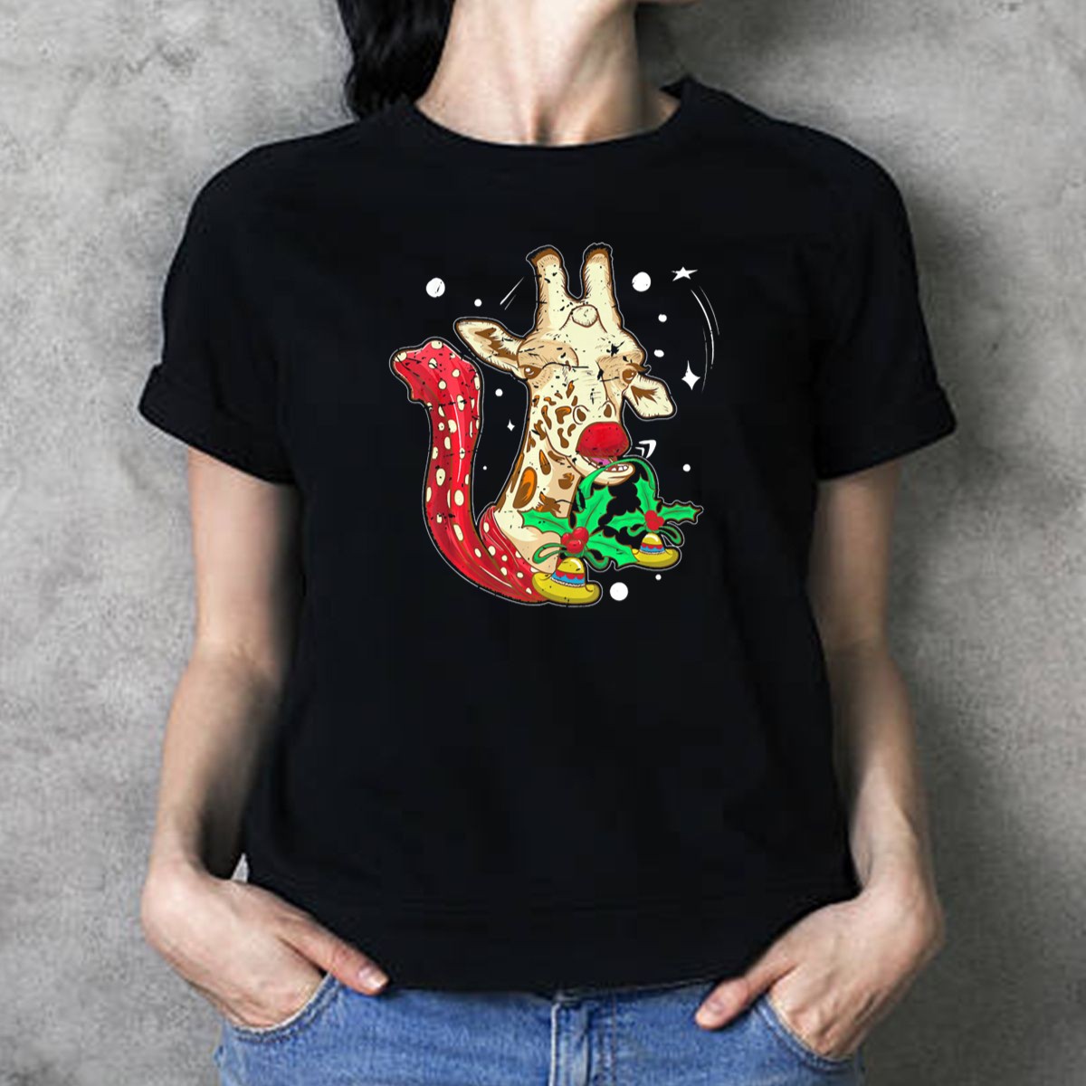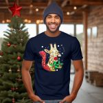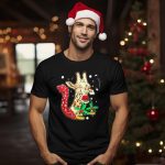 Celebrate the holiday season with a touch of humor in our Funny Xmas Reindeer Nosed Christmas Giraffe T-Shirt! Perfect for animal lovers and those who enjoy a good laugh, this shirt is ideal for casual wear, themed events, or simply spreading festive cheer during daily activities. Its unique fan-made design features a whimsical giraffe adorned with a reindeer nose, holly, and bells, making it a delightful addition to any Christmas wardrobe.