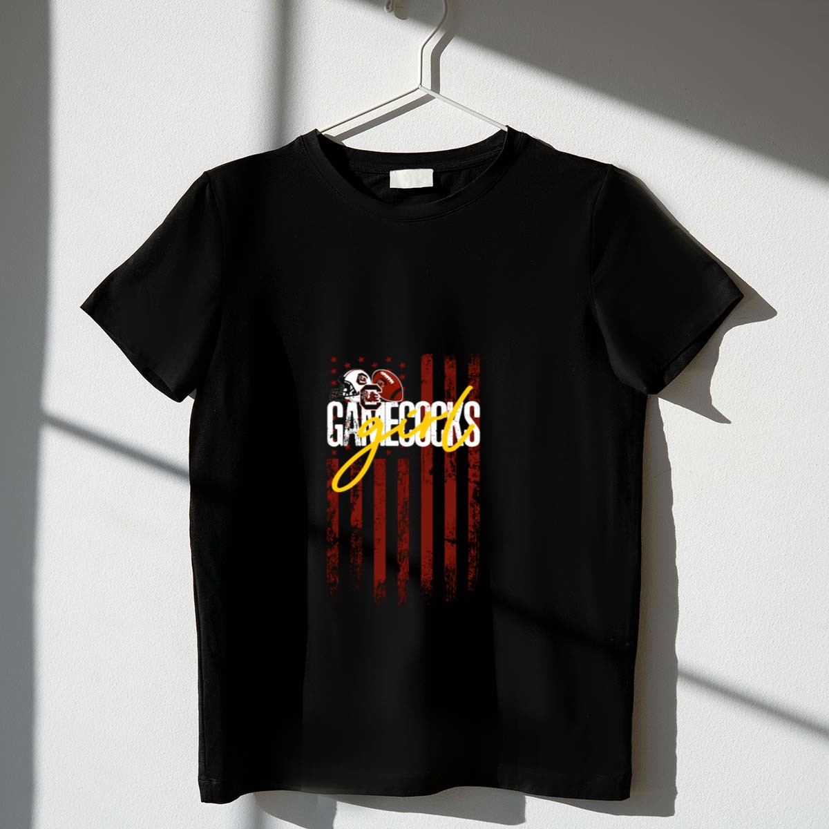 Show your team spirit with our Gamecocks Football Flag Helmet Stars Stripes T-Shirt, perfect for passionate fans who want to represent their love for the South Carolina Gamecocks. This stylish tee is designed for casual wear, themed events, or just everyday outings, making it a versatile addition to your wardrobe. Its fan-made design, proudly printed in the USA, combines comfort and a bold statement, allowing you to cheer for your team in style.