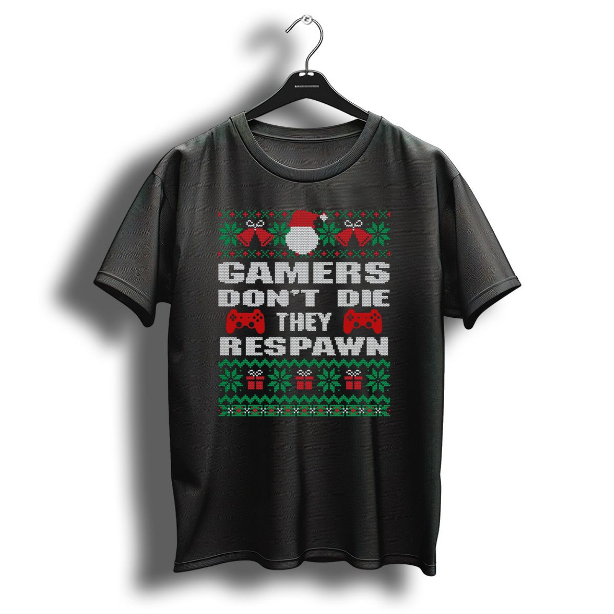 Celebrate the holiday season with our “Gamers Don’t Die, They Respawn” T-shirt, a must-have for every gaming enthusiast! This festive design features a playful blend of gaming culture and Christmas cheer, making it perfect for casual wear, themed events, or just cozying up during those winter gaming marathons. Made with love in the USA, this shirt is not only stylish but also a great conversation starter among fellow gamers. Embrace the spirit of the season and show off your passion for gaming with this unique fan-made design!