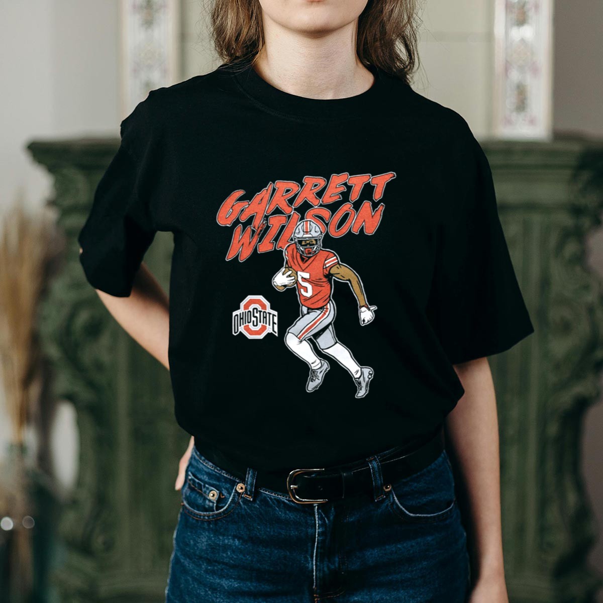 Show your support for Garrett Wilson and the Ohio State Buckeyes with this stylish fan-made T-shirt! Perfect for die-hard football fans, this shirt is designed for casual wear, themed events, or daily outings. Made with a unique print that celebrates Wilson’s legacy, it combines comfort and durability, making it an ideal choice for any season.