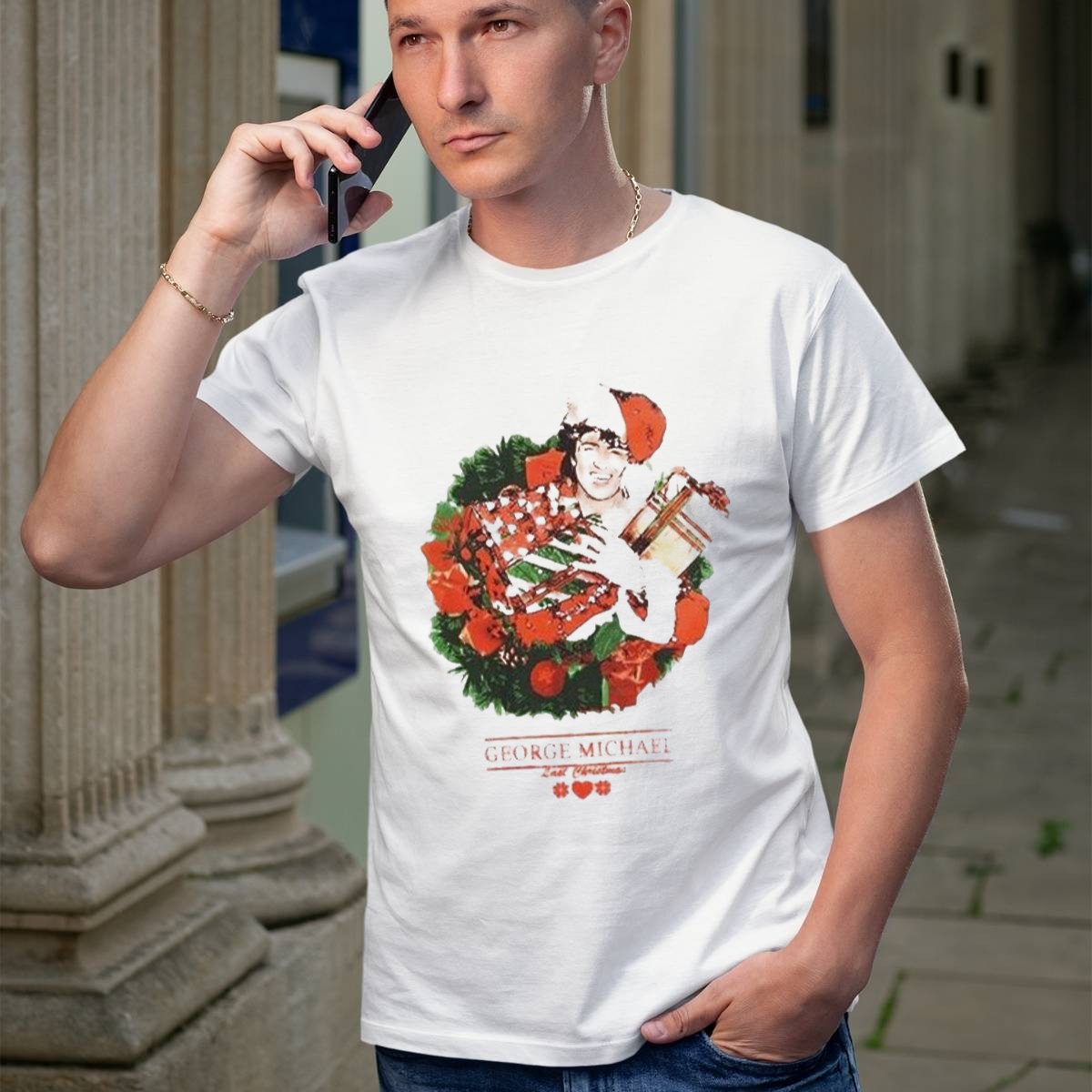 Celebrate the festive spirit with our George Michael Last Christmas Santa Hat Wreath T-Shirt, a perfect homage for fans of the iconic holiday classic. This shirt is designed for those who love to spread joy and nostalgia during the holiday season, making it ideal for casual gatherings, themed events, or simply to enjoy daily wear. With its unique fan-made design printed in the USA, it’s not just a shirt, but a celebration of music and cheer!