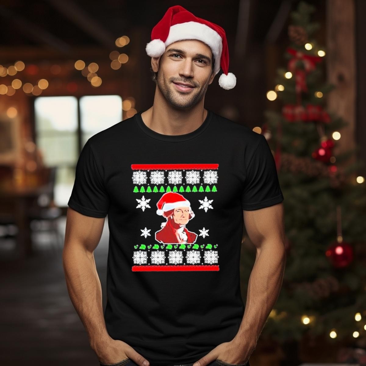 Celebrate the holiday season with a twist of fun in our George Washington Santa Hat Christmas Ugly Sweater Style T-Shirt! Perfect for history buffs and holiday enthusiasts alike, this fan-made design features a festive print that blends iconic American imagery with whimsical Christmas cheer. Whether you’re attending a themed event, gathering with friends, or just enjoying a casual day out, this T-shirt will make you the life of the party while showcasing your unique style. Made in the USA, it’s a must-have for anyone looking to spread holiday joy with a touch of patriotism!