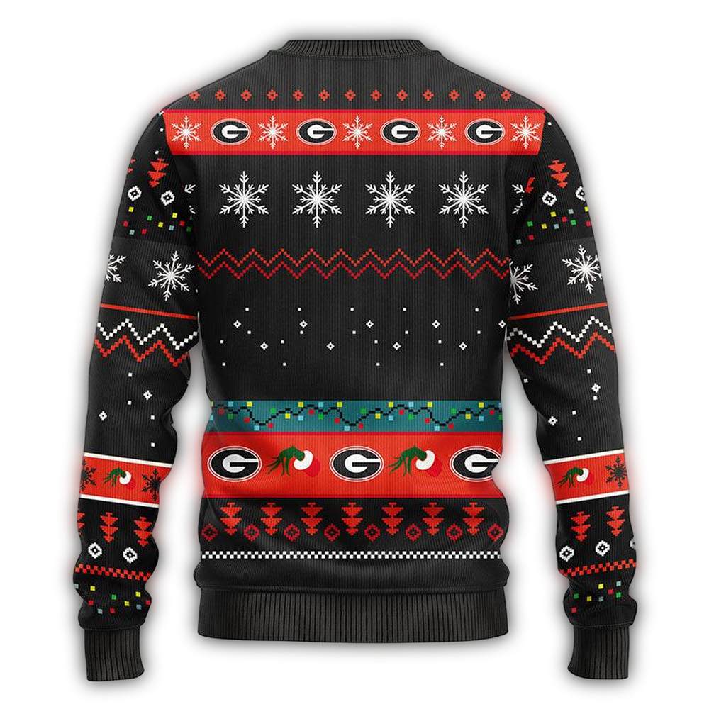 Get ready to show off your Georgia Bulldogs spirit this holiday season with our Grinch-themed Ugly Christmas Sweater! Perfect for die-hard fans and festive revelers alike, this cozy sweater is designed for holiday parties, family gatherings, or simply lounging at home while you sip hot cocoa. With its playful design and cheerful vibe, it’s the ultimate way to bring joy and team pride to any winter occasion!