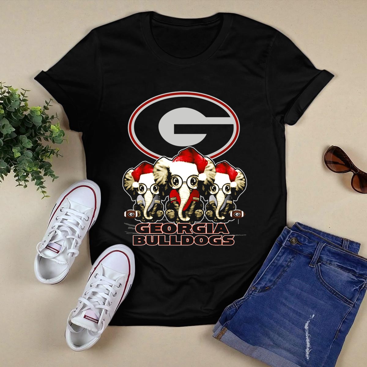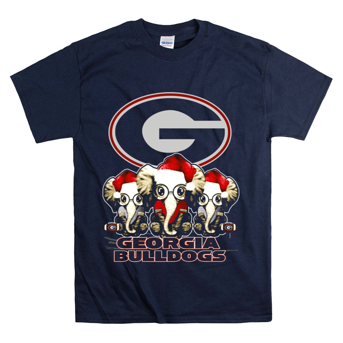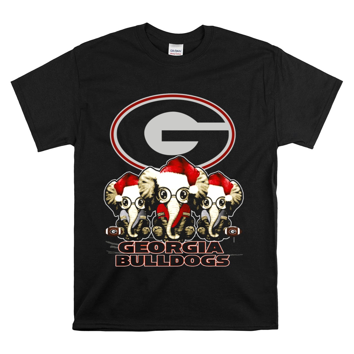 Georgia Bulldogs Elephants Santa Hats Xmas T Shirt