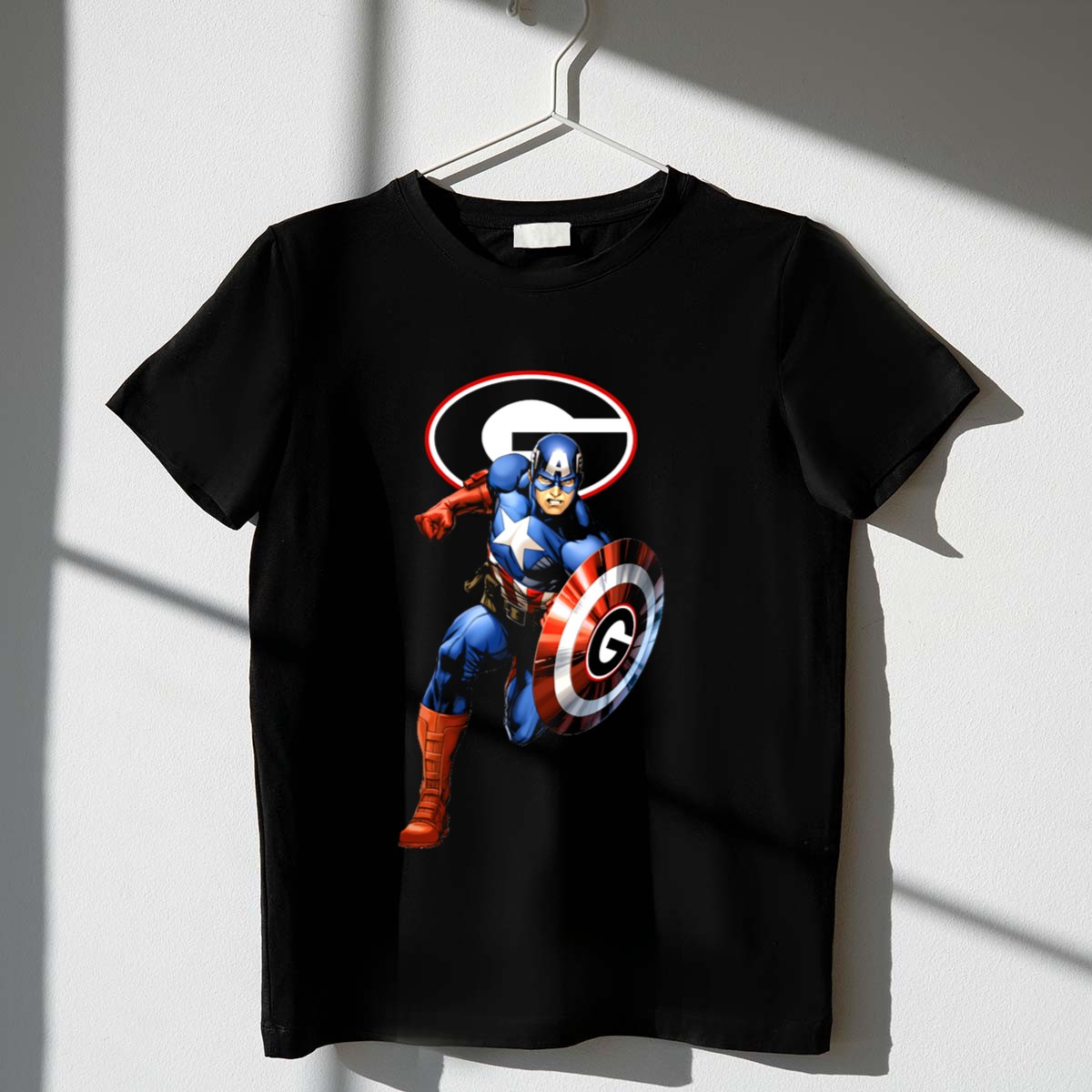 Show your unwavering support for the Georgia Bulldogs with our Football Superhero Shield T-Shirt! This fan-made design is perfect for die-hard fans looking to showcase their team spirit at casual outings, themed events, or during daily wear. Crafted for comfort and style, this shirt combines a classic fit with a unique graphic that embodies the strength and pride of the Bulldogs, making it a must-have for every loyal supporter.
