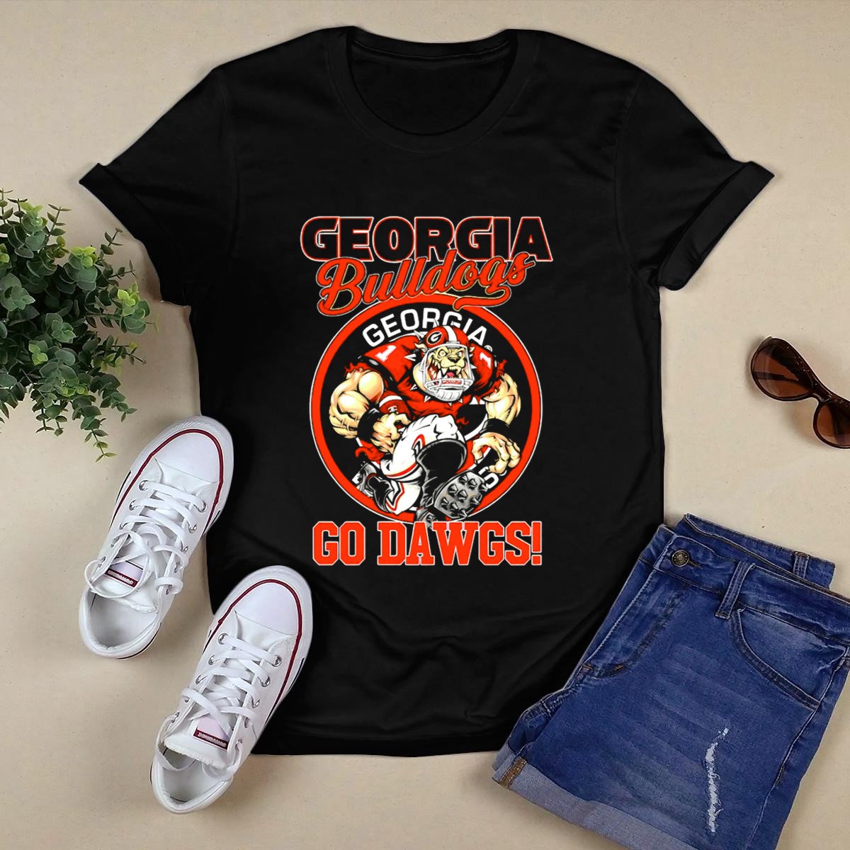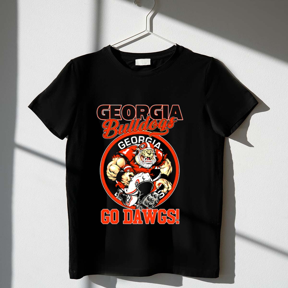 Show your unwavering support for the Georgia Bulldogs with this classic Go Dawgs Bulldog Mascot T-Shirt. Perfect for passionate fans, this tee is ideal for game days, casual outings, or any themed events. Made with a fan-made design, it proudly showcases your team spirit while offering comfort and style, making it a must-have addition to your wardrobe.
