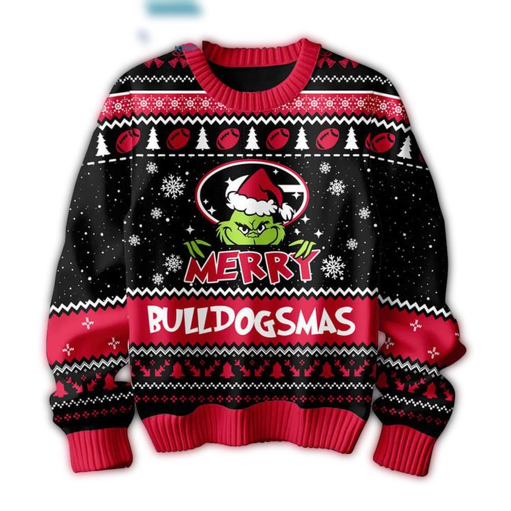 Get ready to spread holiday cheer with our Georgia Bulldogs Grinch Christmas Merry Bulldogsmas Ugly Sweater! Perfect for die-hard fans and holiday revelers alike, this cozy and festive piece is ideal for parties, family gatherings, or just lounging at home while showing off your team spirit. Its unique design combines the beloved Grinch with the iconic Georgia Bulldogs theme, making it a must-have for any true fan looking to make a statement this season!