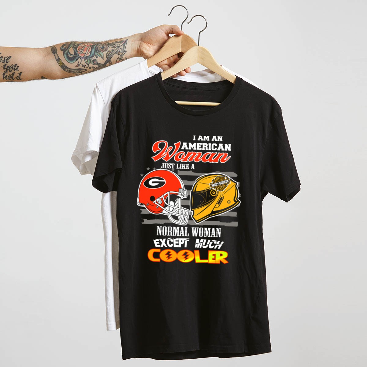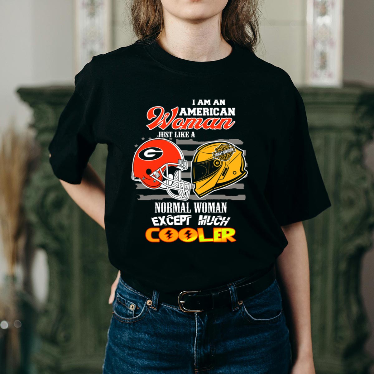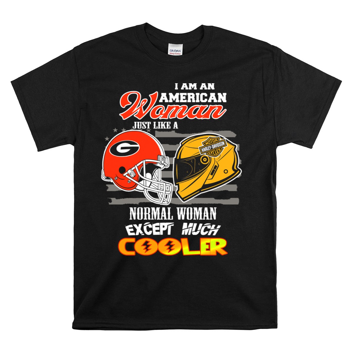 Show your unwavering support for the Georgia Bulldogs with this HD American Woman Cooler Helmet T-Shirt. Perfect for dedicated fans and casual wearers alike, this shirt combines comfort and style, making it an ideal choice for game days, themed events, or just lounging around. With its eye-catching design printed in the USA, you’ll stand out in any crowd while proudly representing your team.