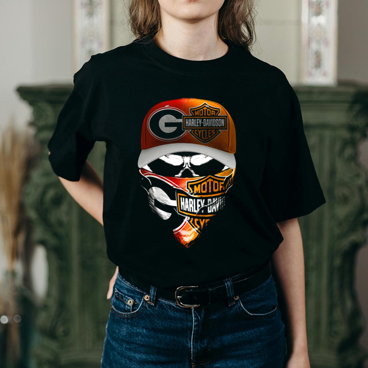 Show your team spirit and love for adventure with the Georgia Bulldogs HD Motorcycles Skull Mask T-Shirt! This eye-catching design is perfect for die-hard fans who want to make a statement at casual gatherings, themed events, or even during your daily errands. Made for comfort and style, this shirt combines a bold graphic with a classic fit, making it a must-have for any Georgia Bulldogs enthusiast. Proudly printed in the USA, it’s not just a shirt, it’s a tribute to your passion!