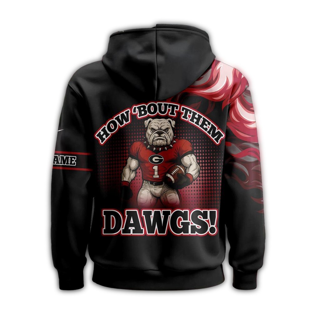 Show your team spirit with the Georgia Bulldogs How Bout Them Dawgs Victory Flame AOP Hoodie! Perfect for dedicated fans, this hoodie is designed for casual outings and everyday wear, providing both comfort and style. With its striking all-over print, it stands out in any crowd, making it a unique addition to your game day wardrobe.
