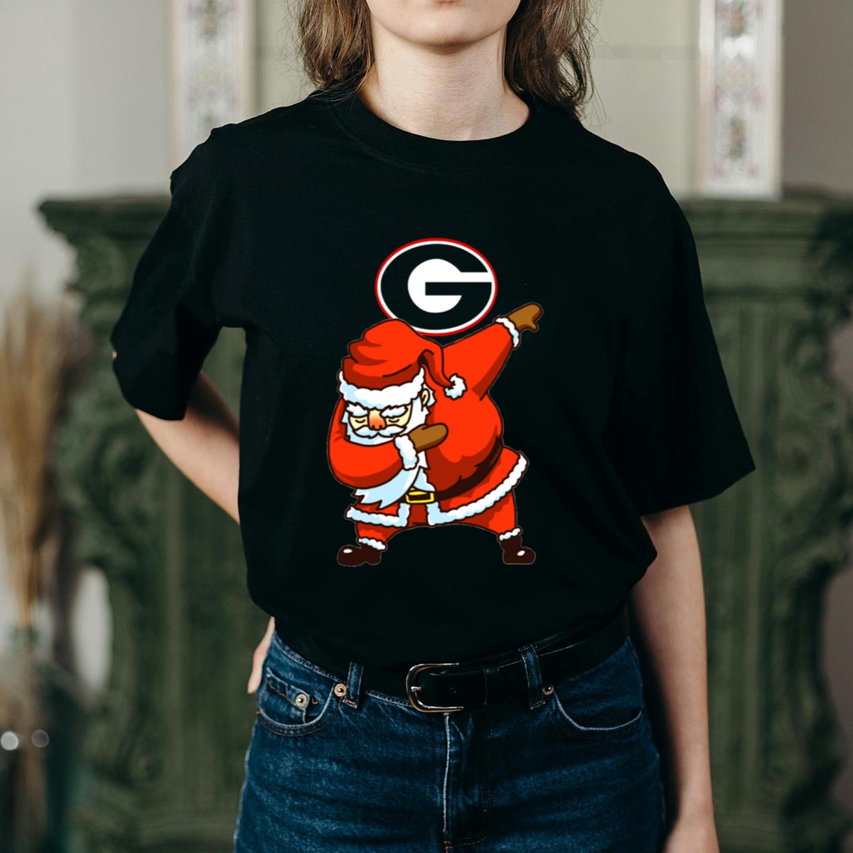 Show your holiday spirit and team pride with our Georgia Bulldogs Santa Dab Logo Christmas Football T-Shirt! This fan-made design is perfect for die-hard Bulldogs supporters who want to celebrate the season in style. Ideal for casual outings, themed events, or just lounging at home, this shirt combines festive cheer with your love for Georgia football, making it a unique addition to your wardrobe.