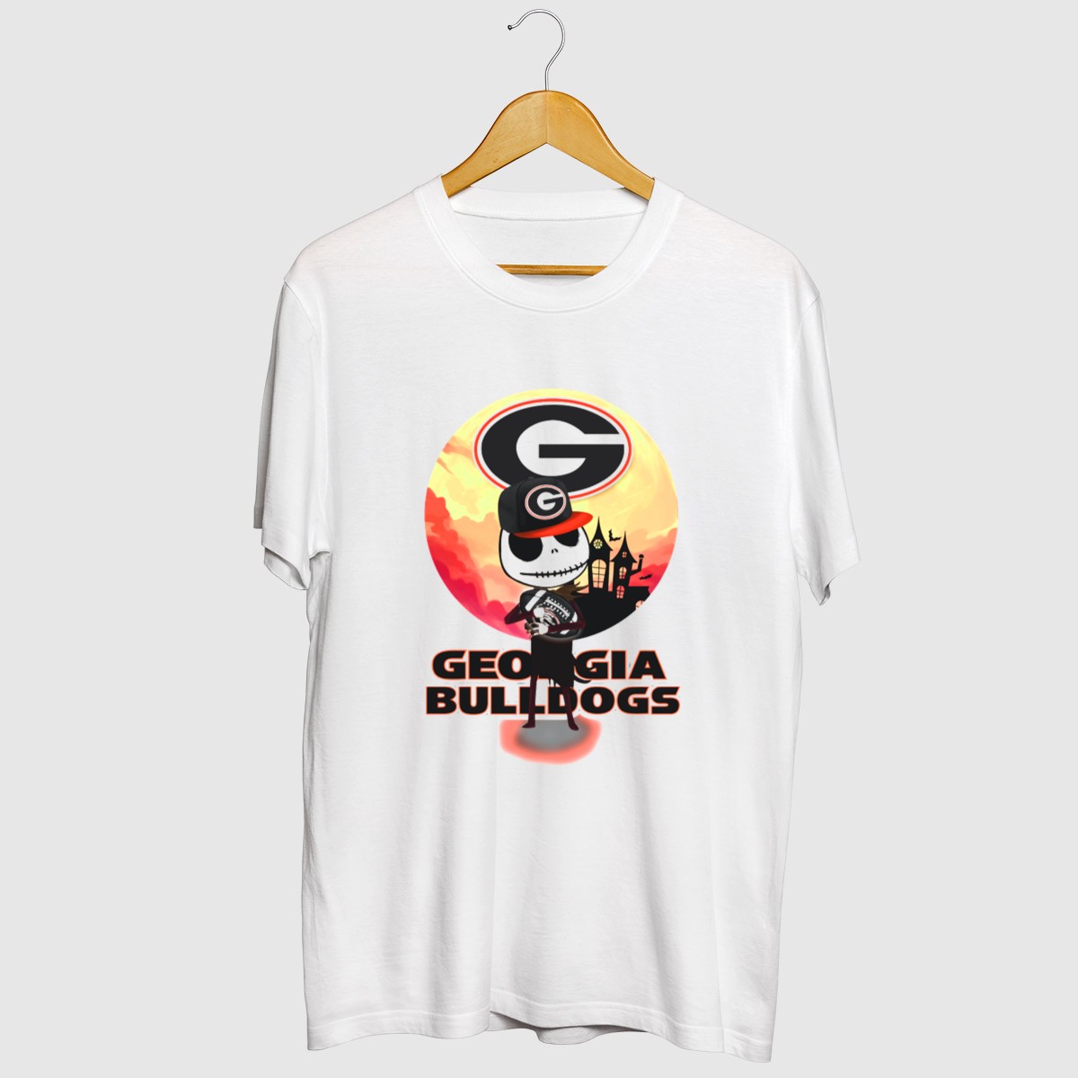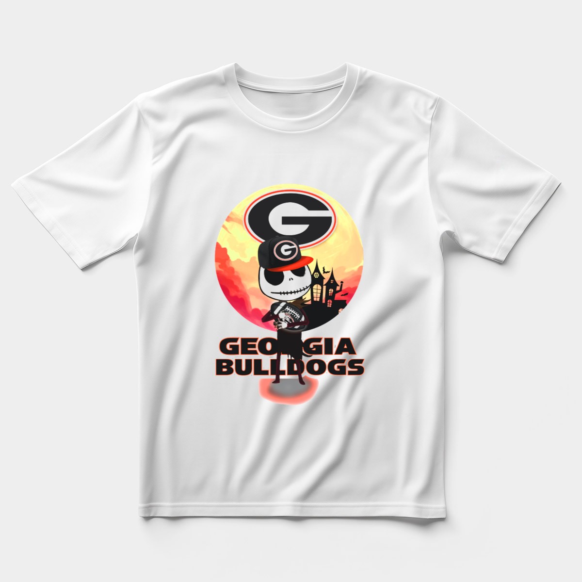 Show your team spirit with our Georgia Bulldogs Skull And Football Scene With Gothic Castle T-Shirt! Perfect for die-hard fans and casual supporters alike, this unique design features a striking skull and football motif set against a gothic castle backdrop, making it an eye-catching addition to any Bulldogs fan’s wardrobe. Ideal for game days, themed events, or simply showing off your love for the team in everyday settings, this shirt combines comfort and style for all-season wear.
