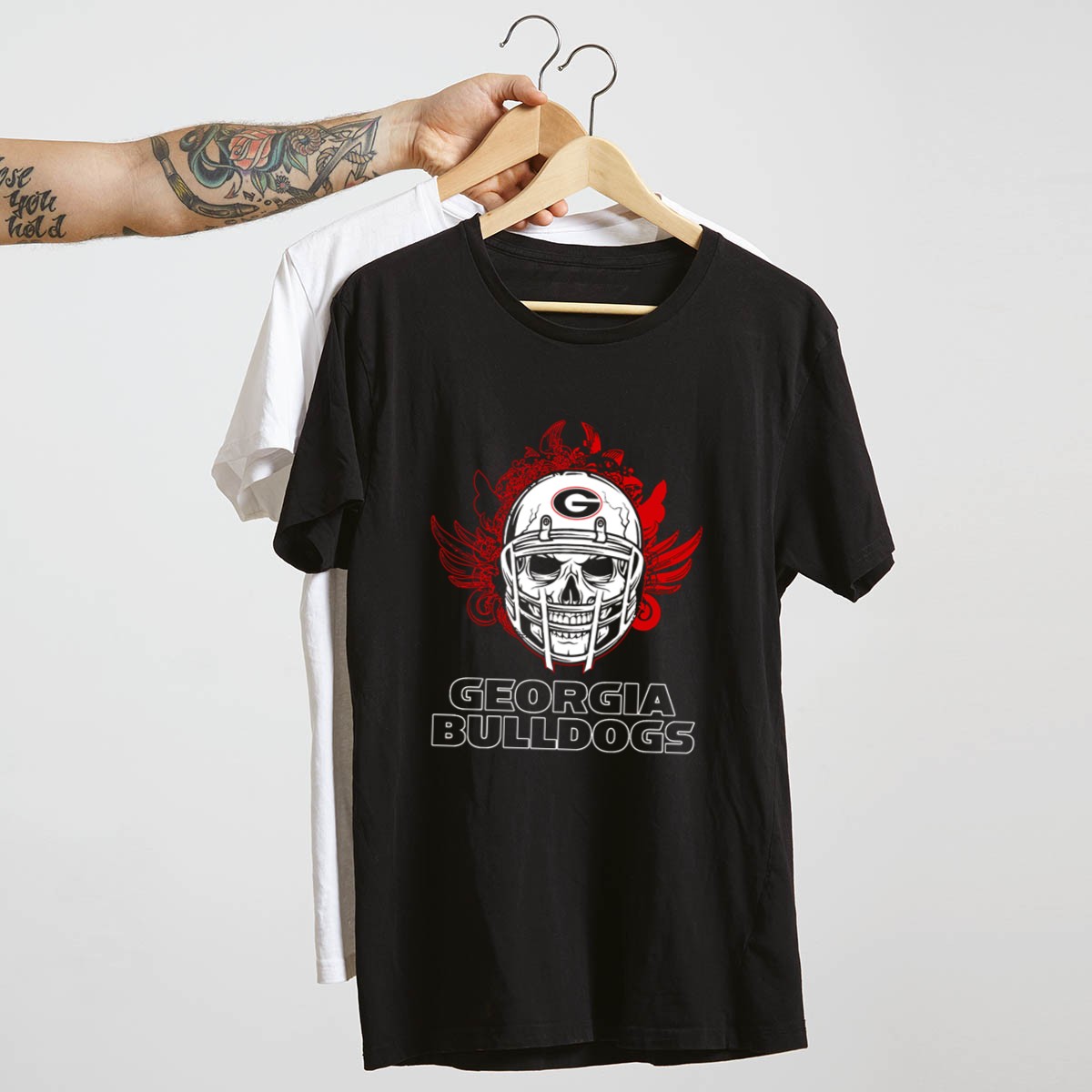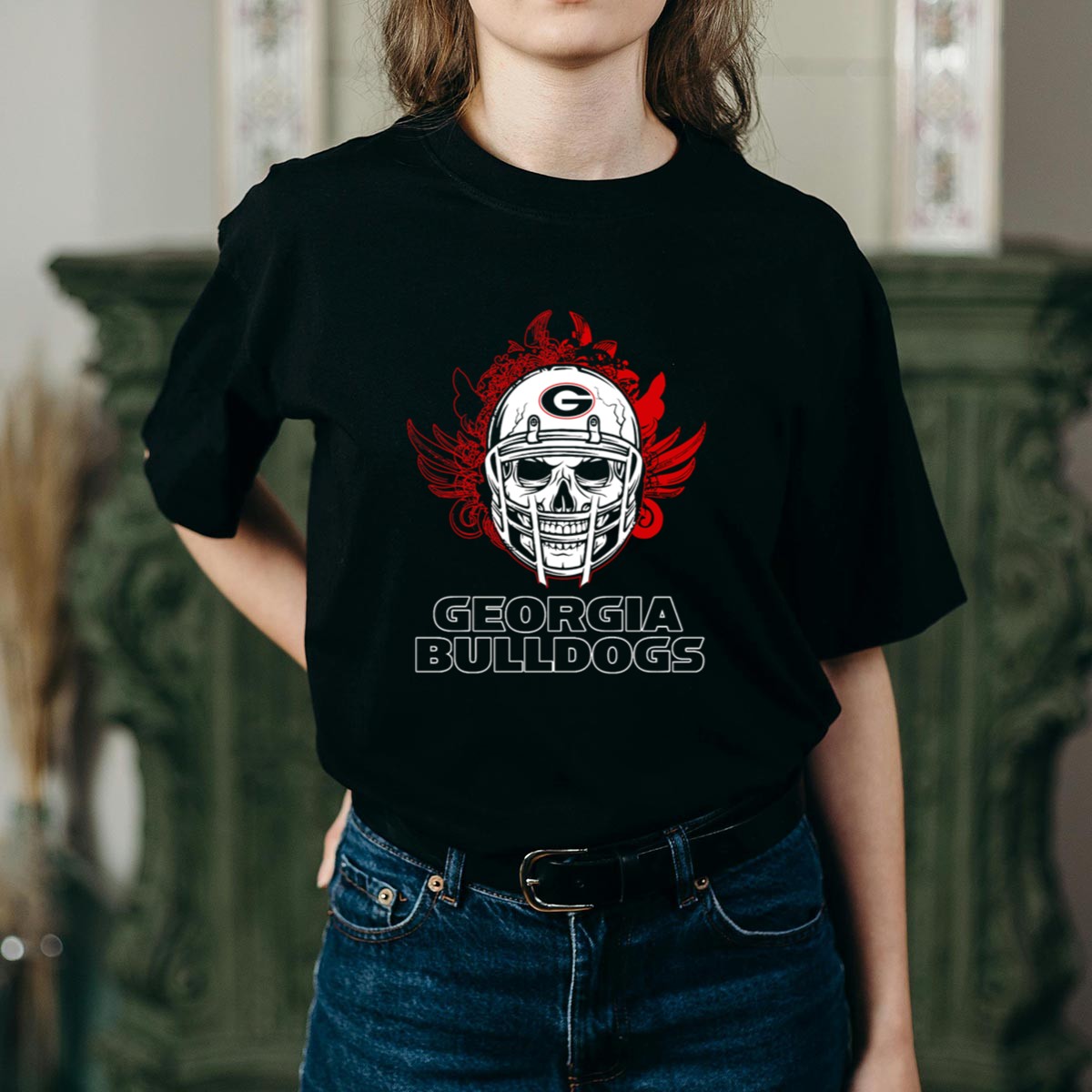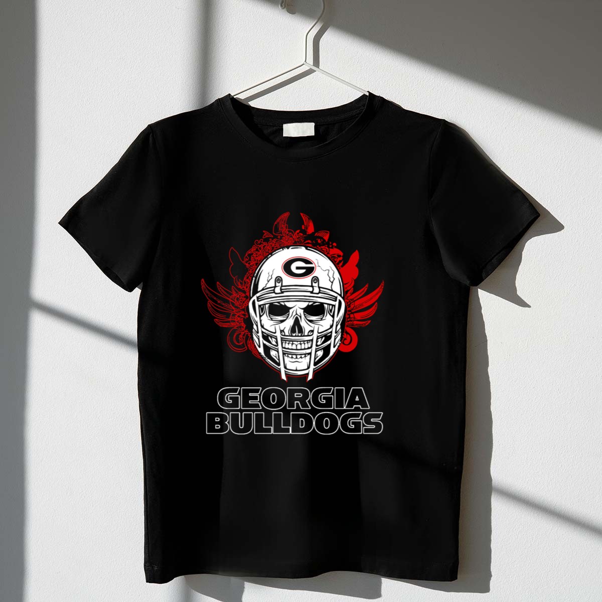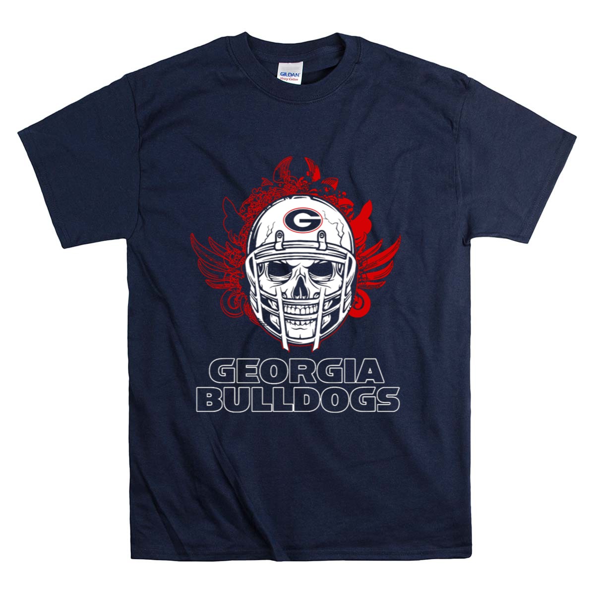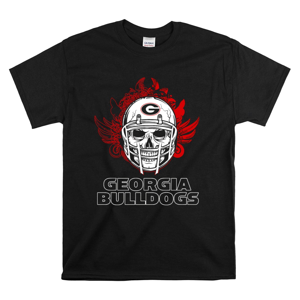 Show off your team spirit with our Georgia Bulldogs Skull Football Helmet with Red Wings T-Shirt! This fan-made design is perfect for die-hard Georgia Bulldogs supporters and is ideal for casual wear, themed events, or simply cheering from the stands. Made with a unique graphic that combines a fierce skull helmet and striking red wings, this shirt is a must-have for anyone looking to showcase their love for the Bulldogs in style.