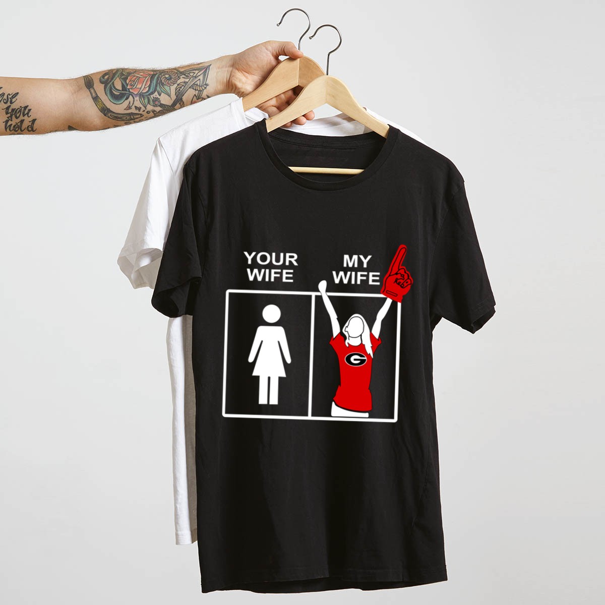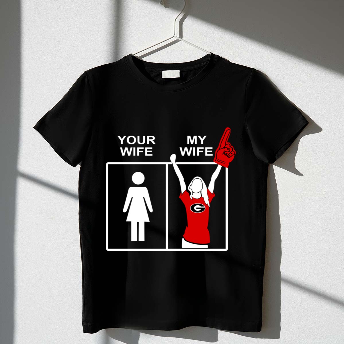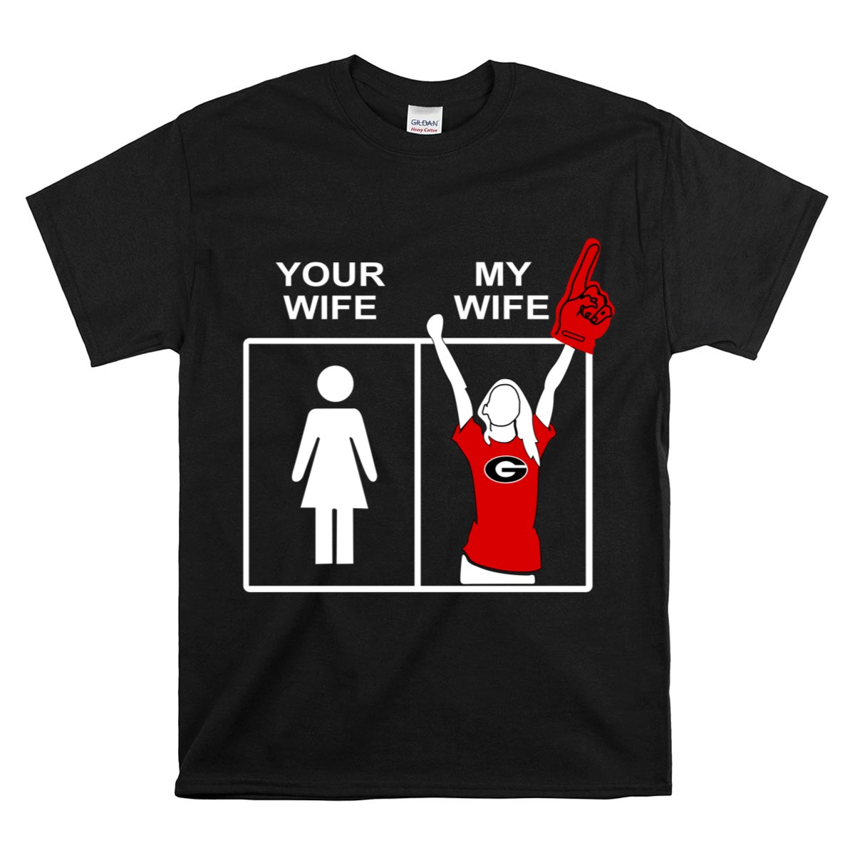 Show your unwavering support for the Georgia Bulldogs with our “Your Wife My Wife” graphic T-shirt, designed for true fans! This playful and bold design is perfect for die-hard Bulldogs supporters and makes a fantastic addition to your casual wear collection. Whether you’re heading to a game, a themed event, or just out and about, this shirt is all about celebrating your team spirit in comfort and style. Plus, it’s fan-made and printed right here in the USA, ensuring that you’re proudly representing your team!