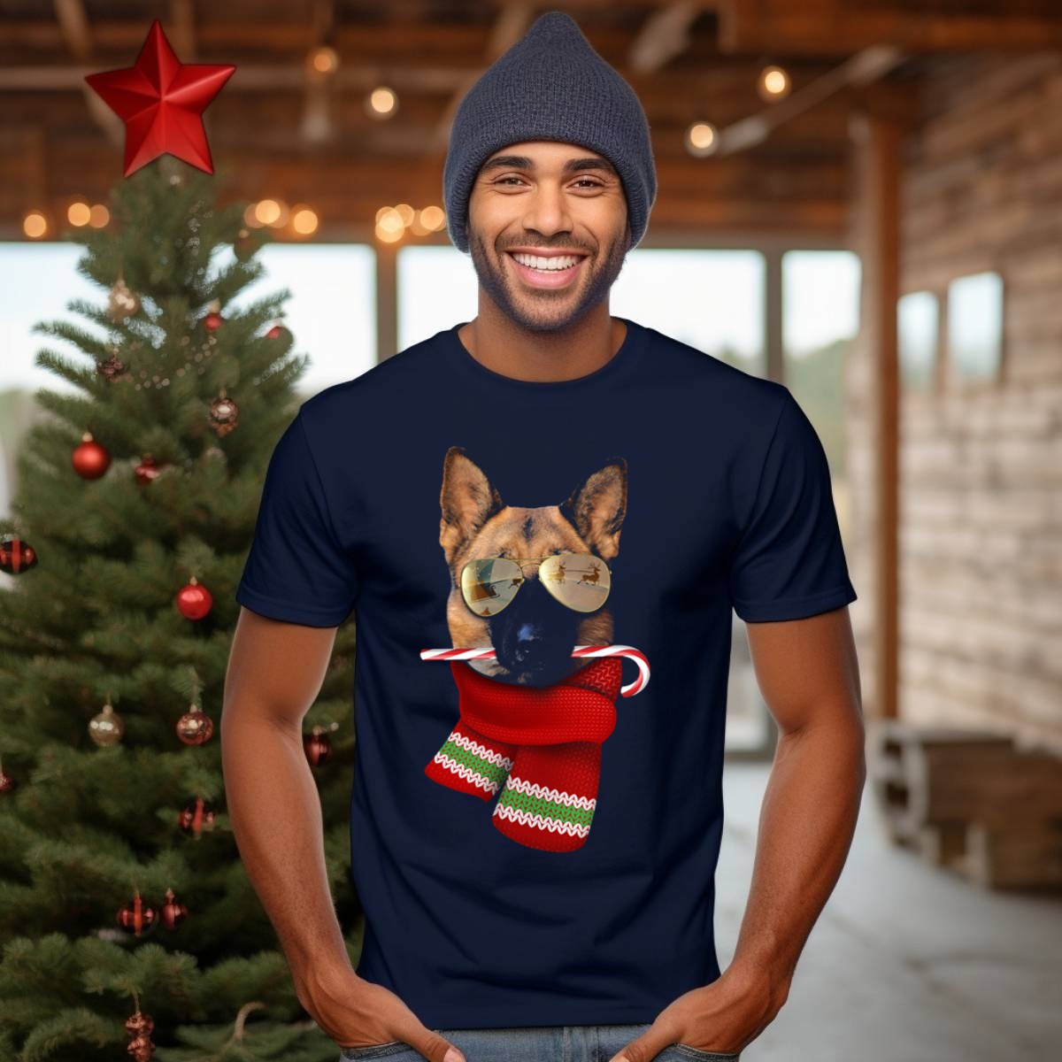 Celebrate the festive season with our charming German Shepherd Christmas Dog T-Shirt! Perfect for dog lovers and holiday enthusiasts alike, this delightful design features a playful German Shepherd adorned with a candy cane and a vibrant red scarf, making it an ideal choice for casual wear, themed events, or simply spreading holiday cheer. Crafted for comfort and style, this shirt is a must-have for anyone who wants to showcase their love for dogs during the most wonderful time of the year.
