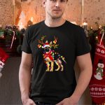 German Shepherd Christmas Reindeer Antlers Santa Hat Festive Lights T-Shirt