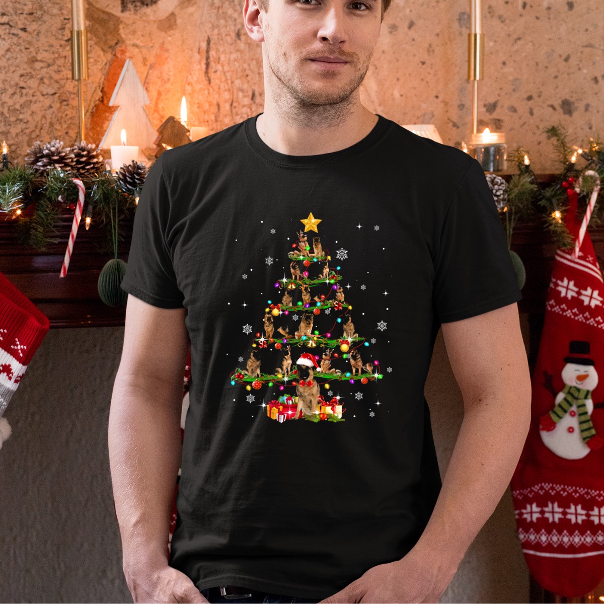 German Shepherd Christmas Tree With Santa Hat And Star T-Shirt