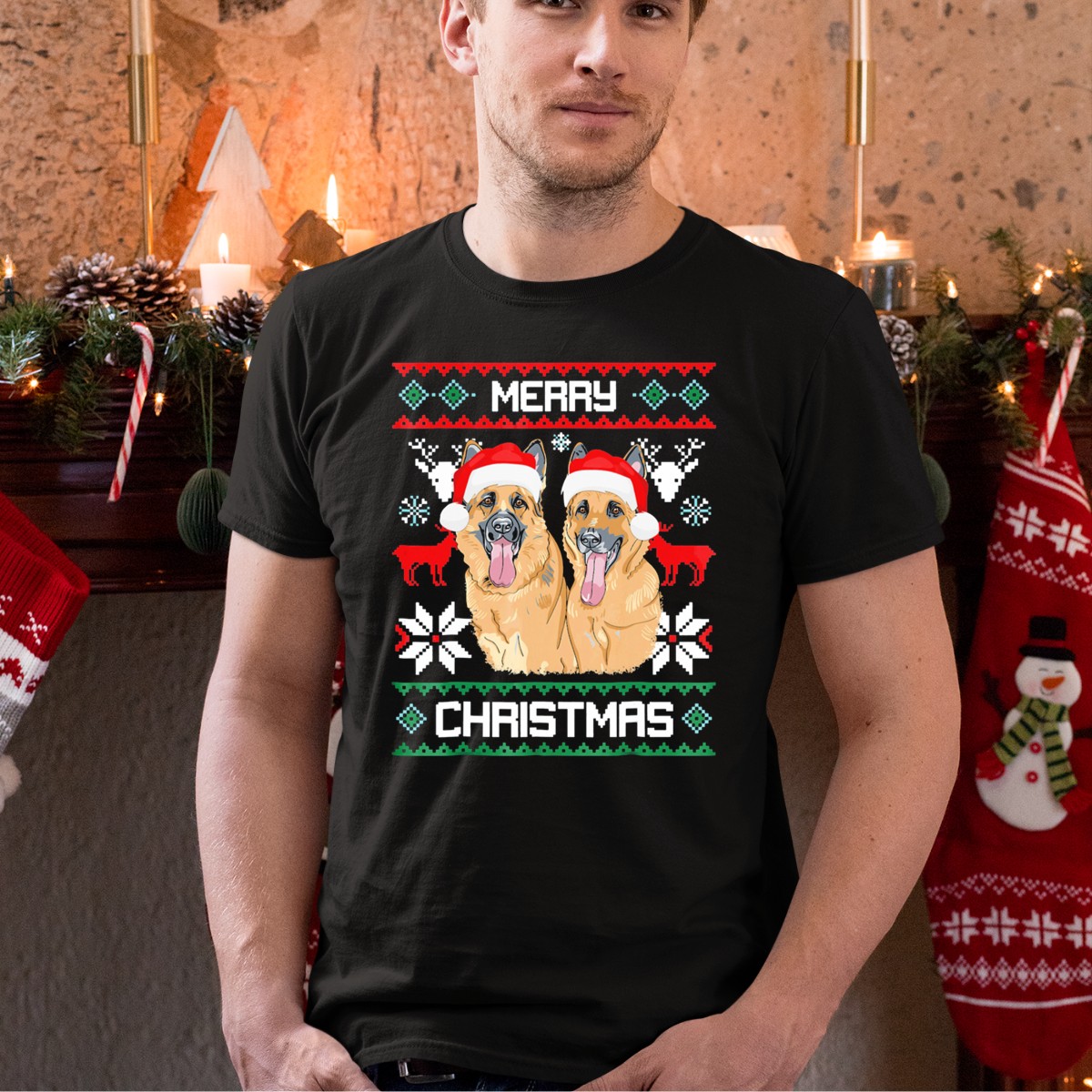 Celebrate the holiday season with our charming German Shepherd Couple Merry Christmas Santa Hats Holiday T-Shirt! This delightful tee is perfect for dog lovers who want to spread festive cheer while showcasing their love for their furry friends. Ideal for casual gatherings, themed events, or simply lounging at home, this fan-made design is printed in the USA and uniquely captures the spirit of Christmas with a fun twist. Stay comfortable and stylish all season long!
