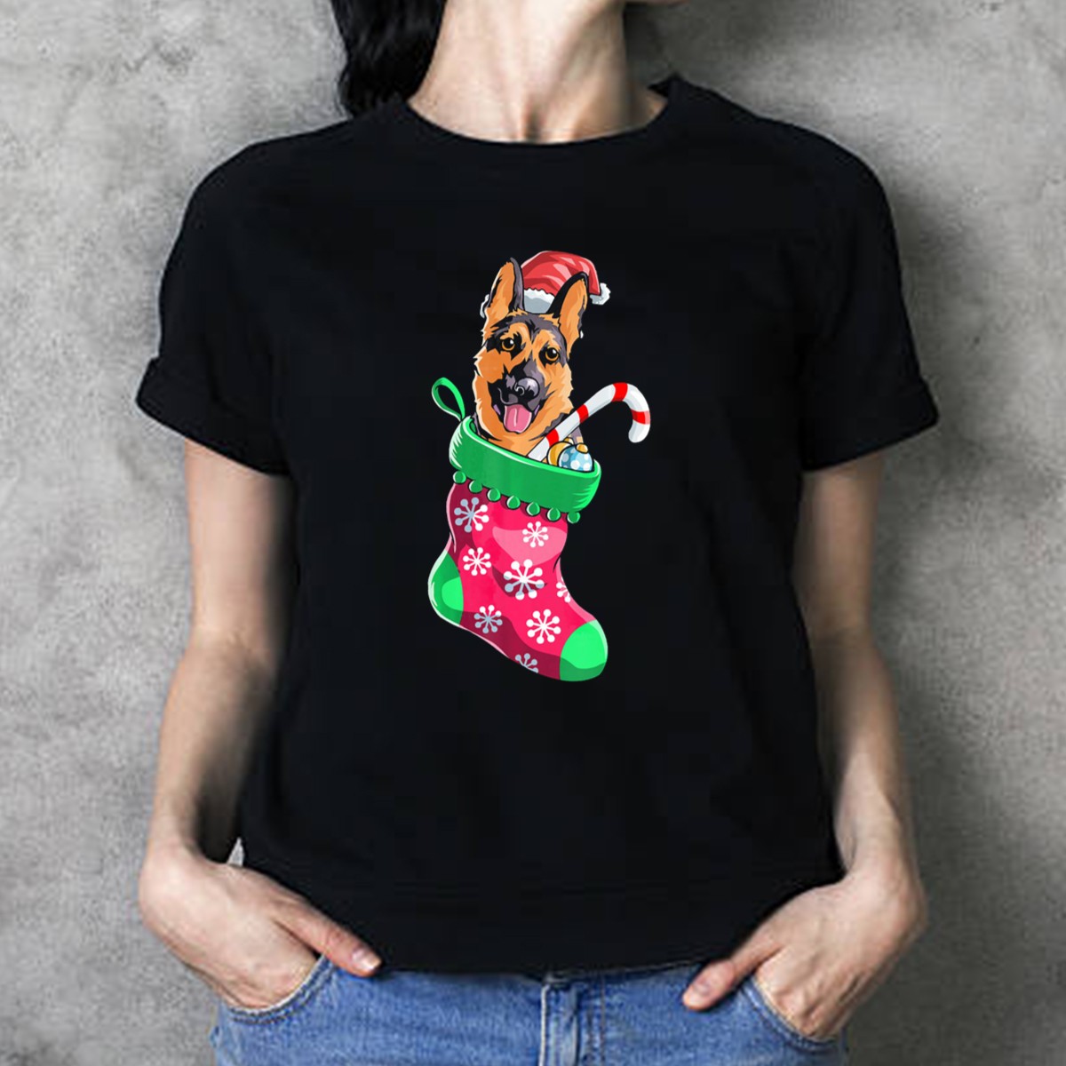 Celebrate the festive season in style with our German Shepherd In Christmas Santa Hat Stocking With Candy Cane T-Shirt! Perfect for dog lovers and holiday enthusiasts alike, this adorable tee captures the spirit of Christmas with a playful design that showcases your love for the German Shepherd breed. Ideal for casual gatherings, themed events, or simply spreading cheer during your daily wear, this shirt is sure to become a cherished addition to your holiday wardrobe.