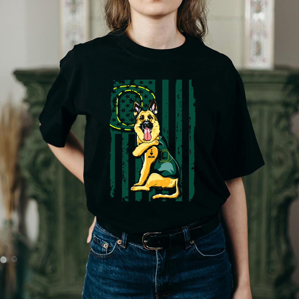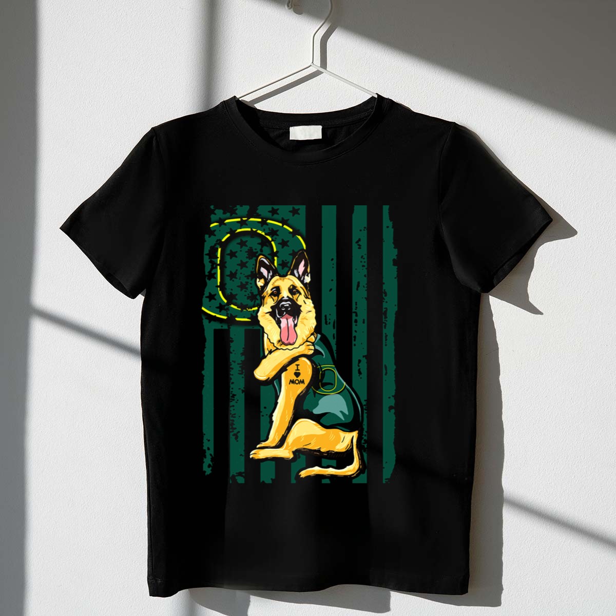 Show your love for both your favorite team and your furry friend with our German Shepherd Oregon Ducks I Heart Mom Green Flag T-Shirt. Perfect for dog lovers and Oregon Ducks fans alike, this shirt is an ideal choice for casual outings, themed events, or just lounging around the house. Its fan-made design is printed in the USA, making it not only a stylish choice but also a unique statement piece that celebrates your passions.