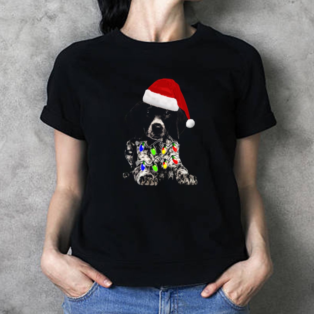 Show off your love for the German Shorthair Pointer this holiday season with our festive T-shirt featuring a playful design of your favorite breed adorned with Christmas lights and a Santa hat. Perfect for dog lovers and enthusiasts, this shirt is ideal for casual gatherings, themed events, or simply celebrating the holiday spirit every day. Its unique fan-made design, printed in the USA, is sure to make you stand out while spreading joy and cheer!