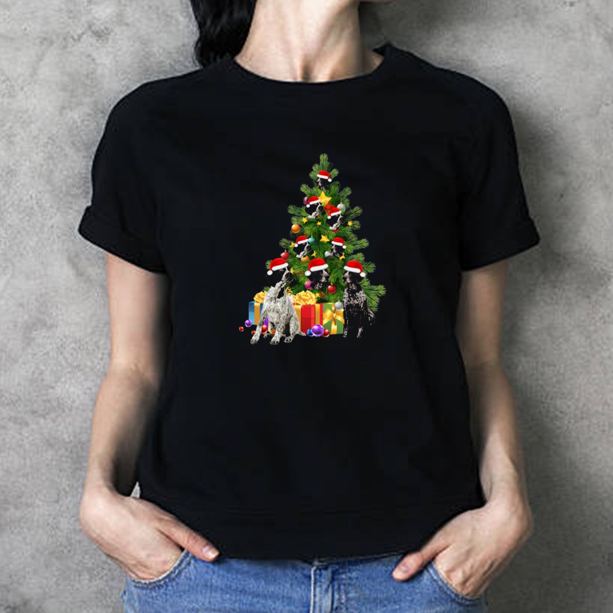Celebrate the festive season in style with our German Shorthaired Pointer Dogs T-shirt, featuring adorable pups donning Santa hats and surrounded by a beautifully decorated Christmas tree and gifts. This design is perfect for dog lovers and holiday enthusiasts alike, making it an ideal choice for casual wear, themed events, or simply spreading cheer during the holidays. With a fan-made design proudly printed in the USA, this shirt is sure to bring joy and warmth to your wardrobe.