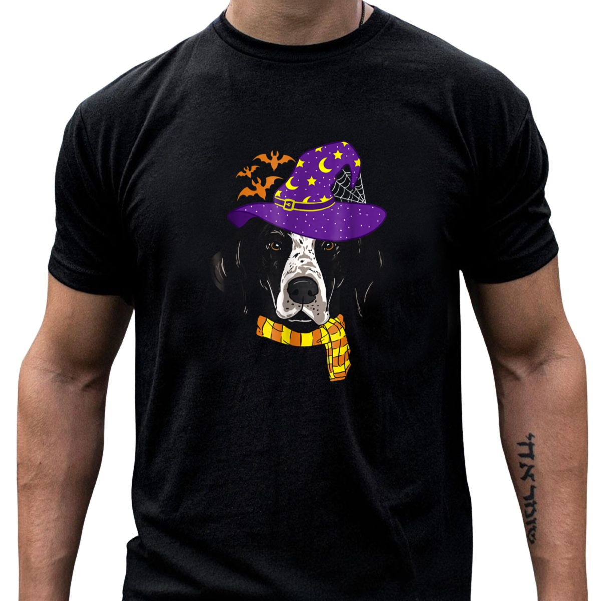 German Shorthaired Pointer With Halloween Witch Hat And Bats T-Shirt