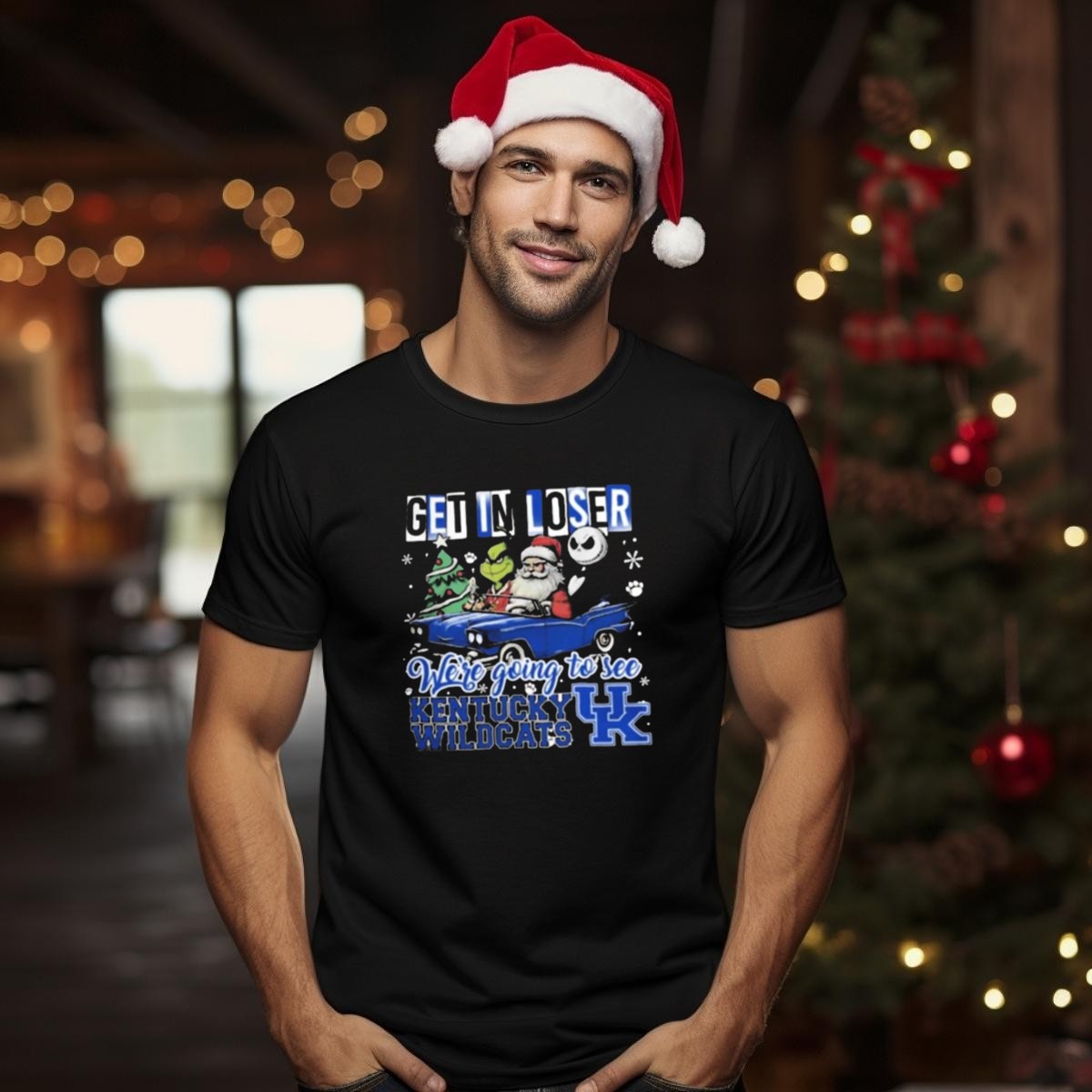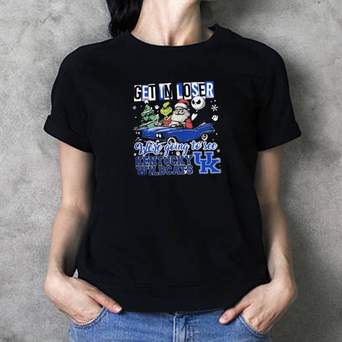Embrace the holiday spirit with our fan-made “Get In Loser Santa Grinch Jack Skellington Driving Car Kentucky Wildcats” T-shirt! Perfect for those who love to combine festive cheer with a touch of whimsy, this shirt is ideal for casual get-togethers, themed events, or simply showcasing your unique style during the holiday season. Crafted with care in the USA, it’s not just a shirt; it’s a statement piece that celebrates your love for all things Christmas and Kentucky Wildcats.