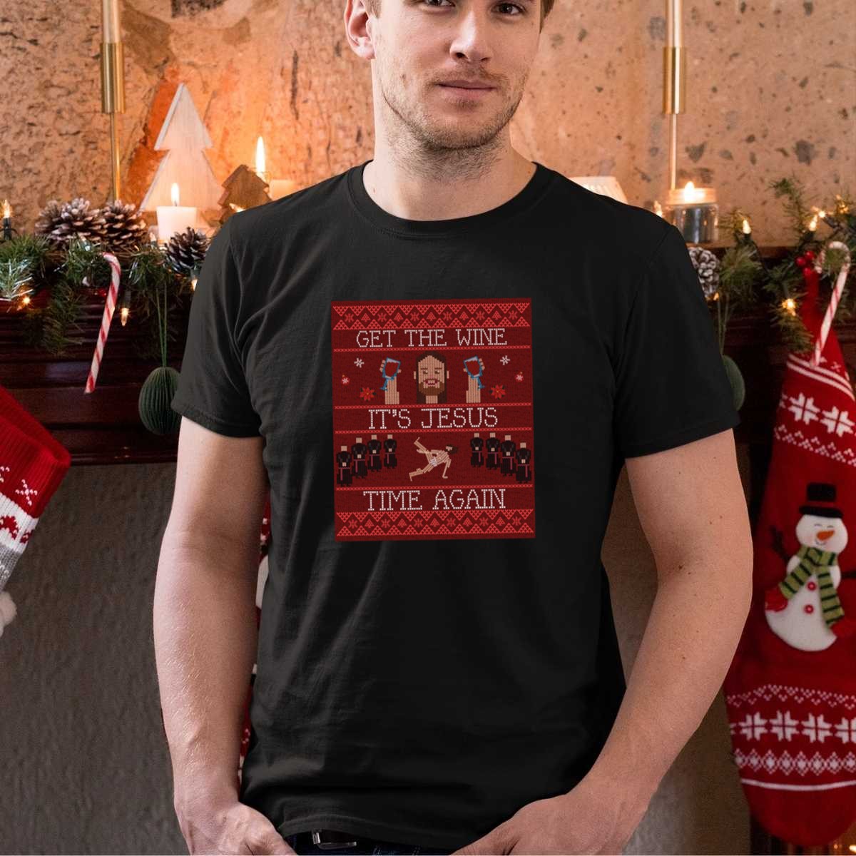 Get The Wine It’s Jesus Time Again Ugly Christmasfunny Jesus Birthday T-Shirt
