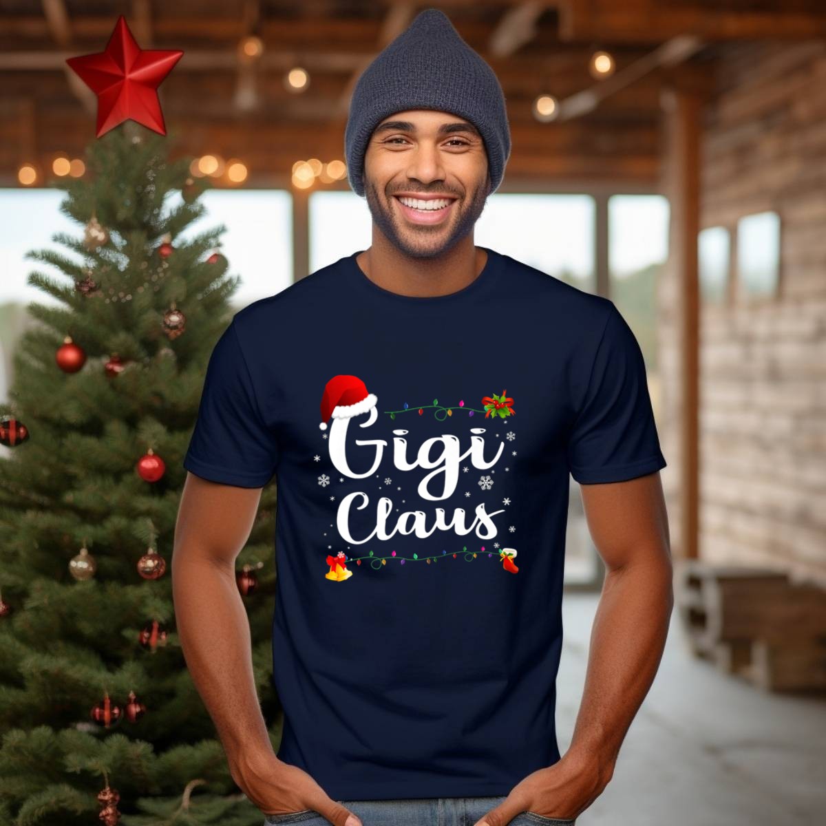 Be the first to review “Gigi Claus Santa Hat Christmas Xmas Lights Snowflakes T Shirt”
