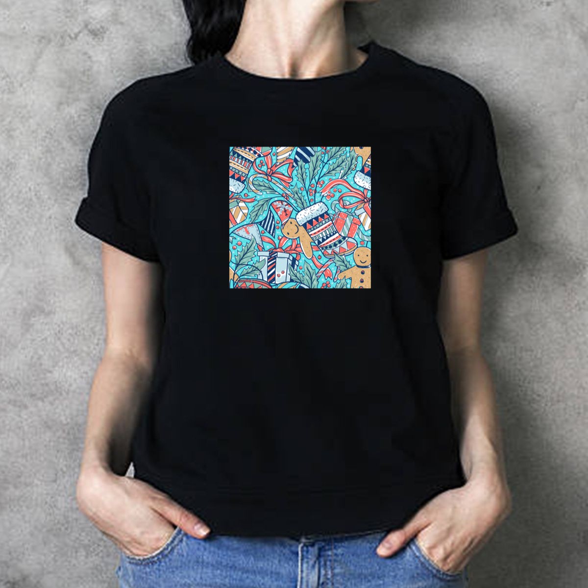 Be the first to review “Gingerbread Cookies Holly Leaves Christmas Gifts Candy Canes Snowflakes T-Shirt”