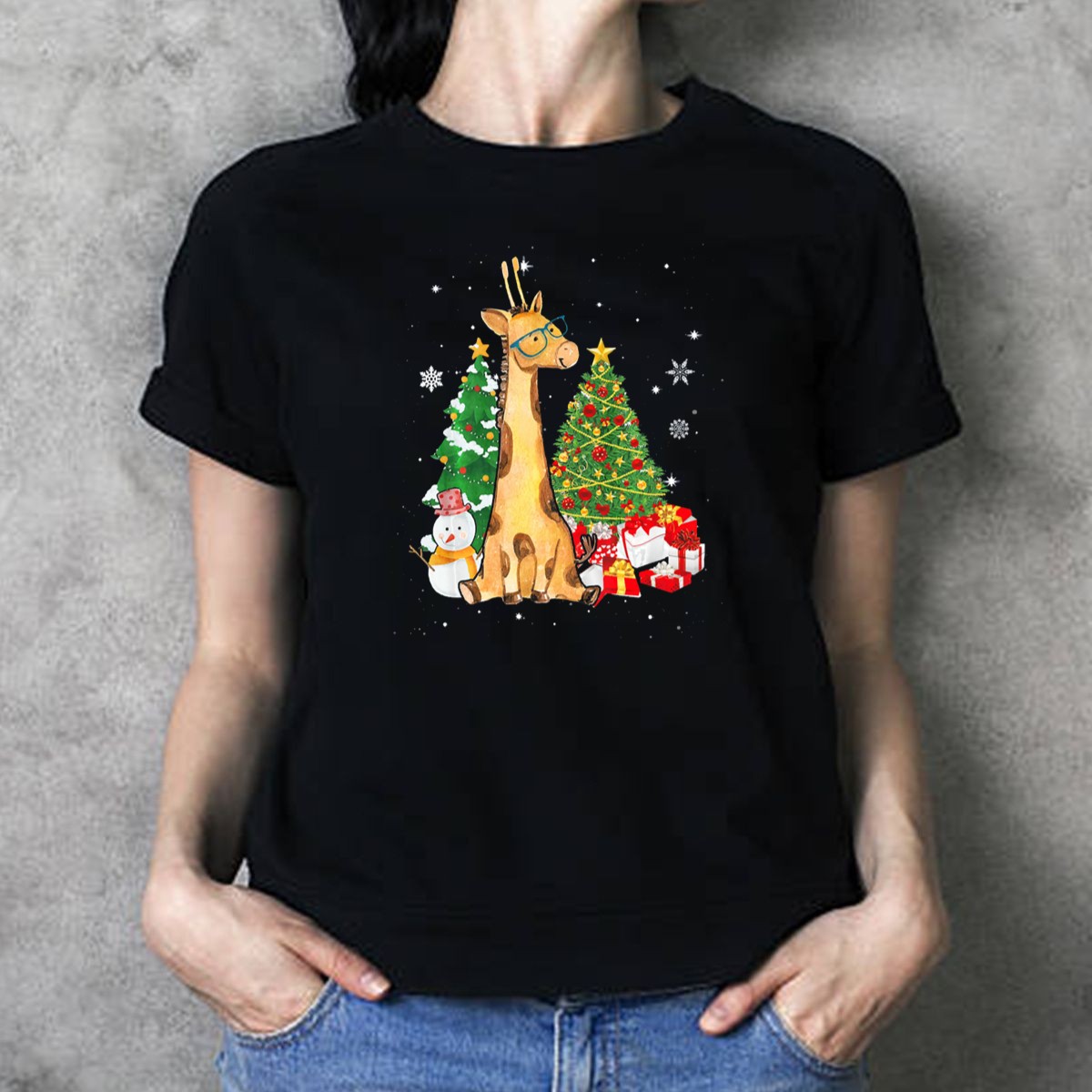 Giraffe Christmas Tree Glasses Snowman Presents Holiday Lover T-Shirt