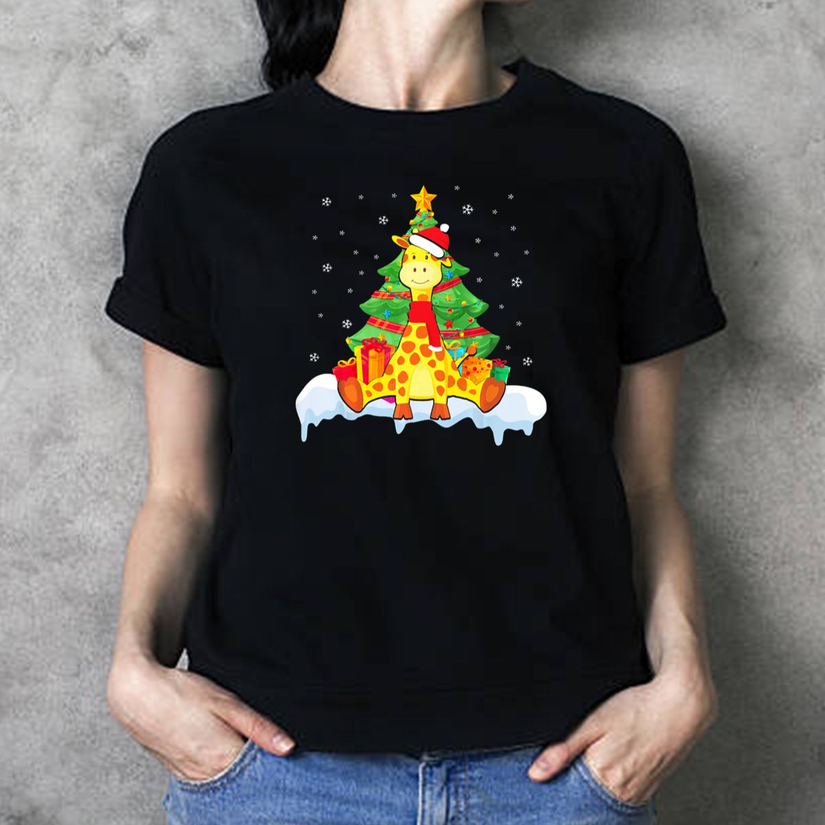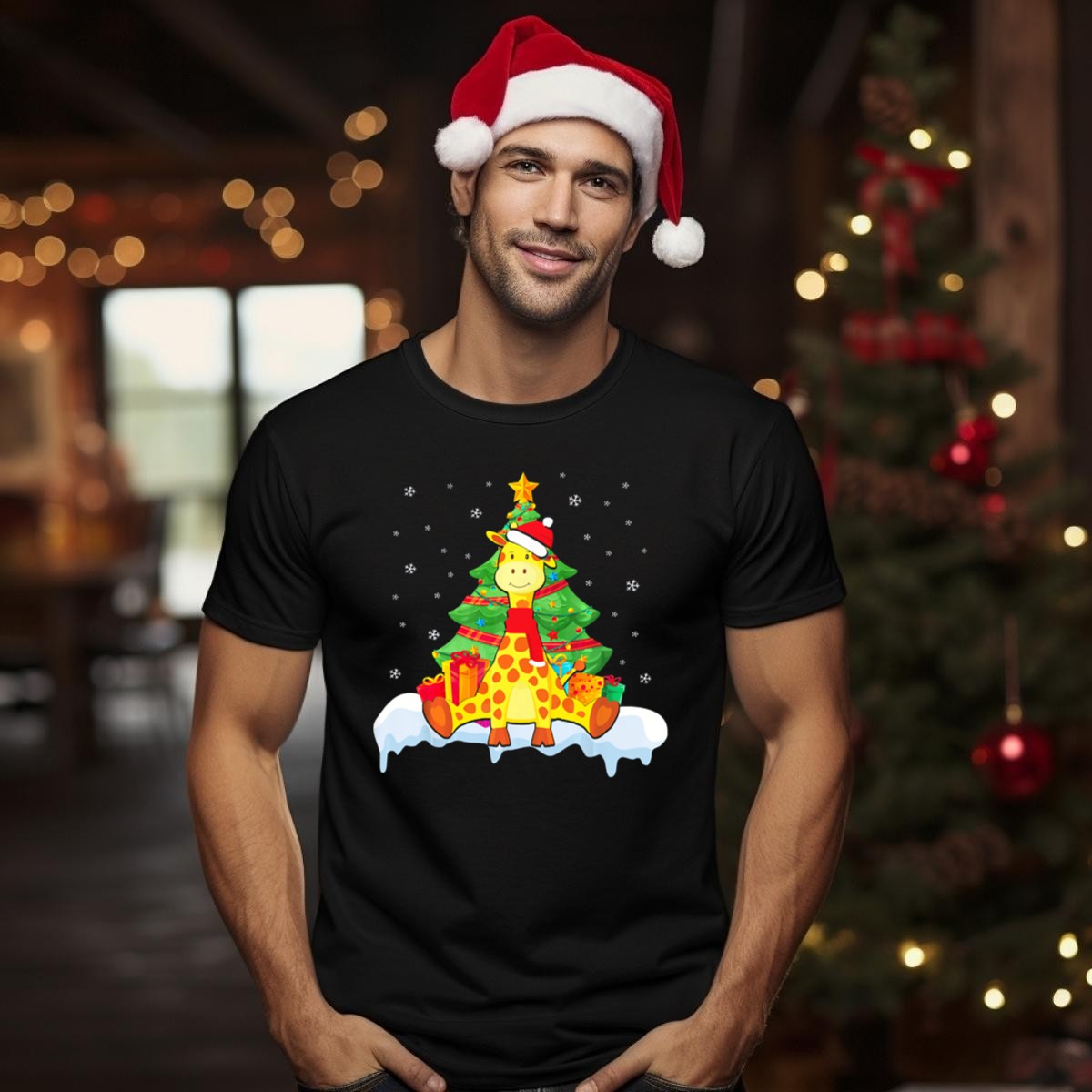 Celebrate the holiday spirit with our delightful Giraffe With Santa Hat And Scarf T-Shirt! Perfect for animal lovers and festive enthusiasts alike, this charming design features a whimsical giraffe decked out in a Santa hat and scarf, nestled in front of a beautifully adorned Christmas tree surrounded by snowflakes and presents. Ideal for casual wear, themed events, or simply spreading holiday cheer, this fan-made design is printed in the USA for a unique touch that stands out during the festive season.
