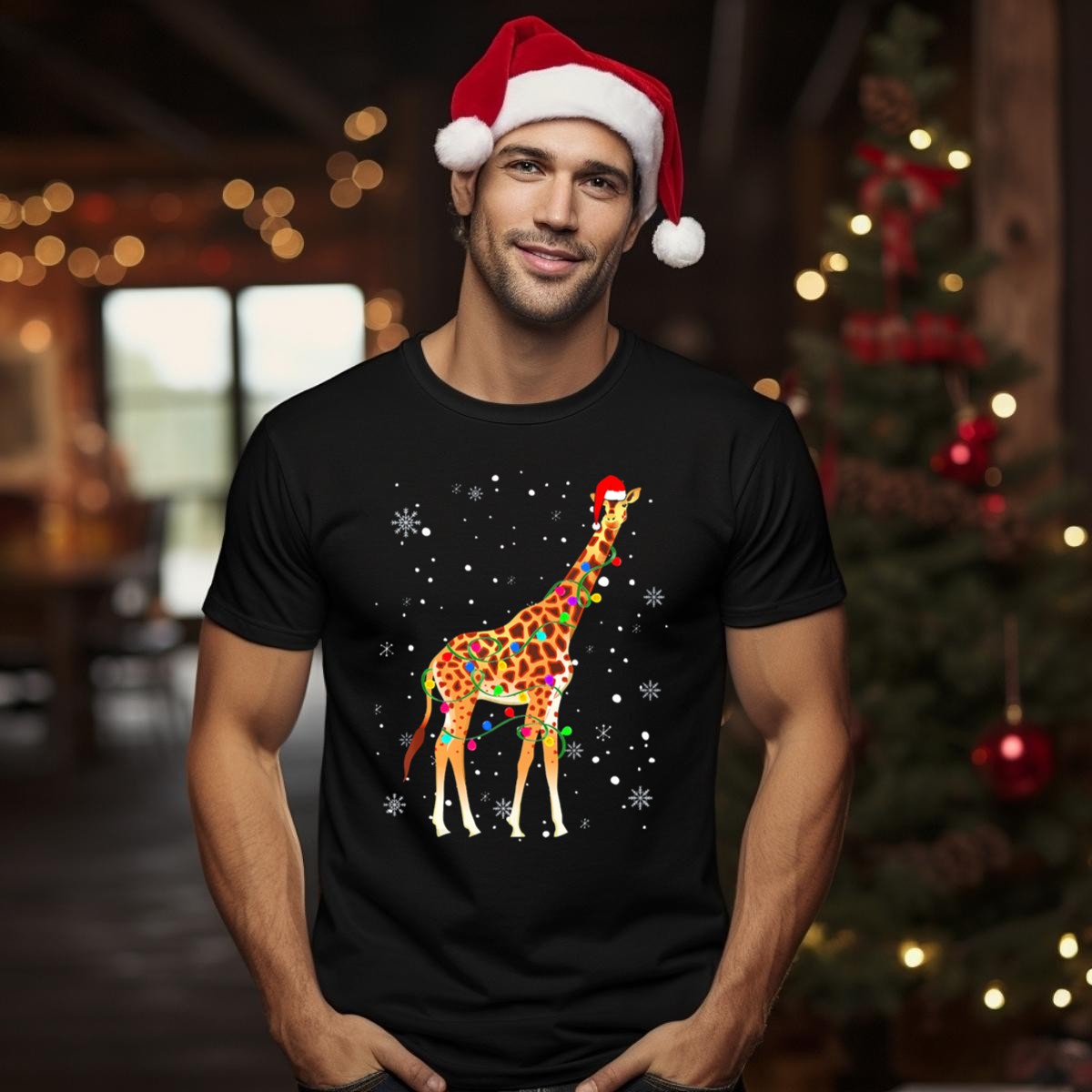 Embrace the holiday spirit with our delightful Giraffe Wrapped In Christmas Lights Wearing Santa Hat With Snowflakes T-Shirt! This whimsical design is perfect for animal lovers and festive enthusiasts alike, making it an ideal choice for casual wear, themed events, or just spreading some cheer during the holiday season. Crafted for comfort and style, this shirt is a unique addition to your wardrobe that showcases your fun personality while celebrating the joys of winter!