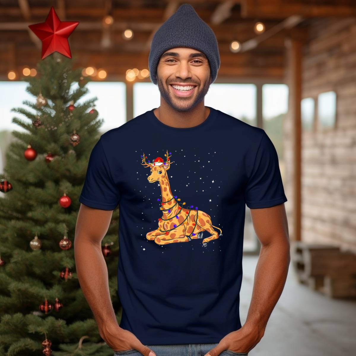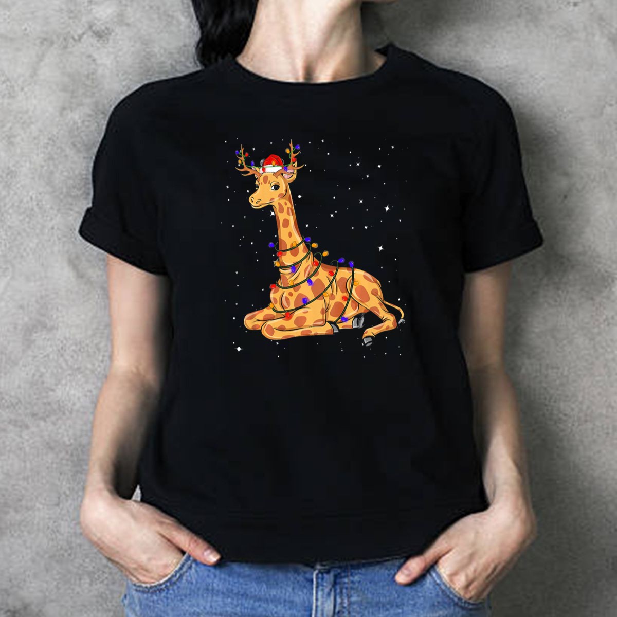 Be the first to review “Giraffe Wrapped In Christmas Lights With Santa Hat And Antlers T Shirt”