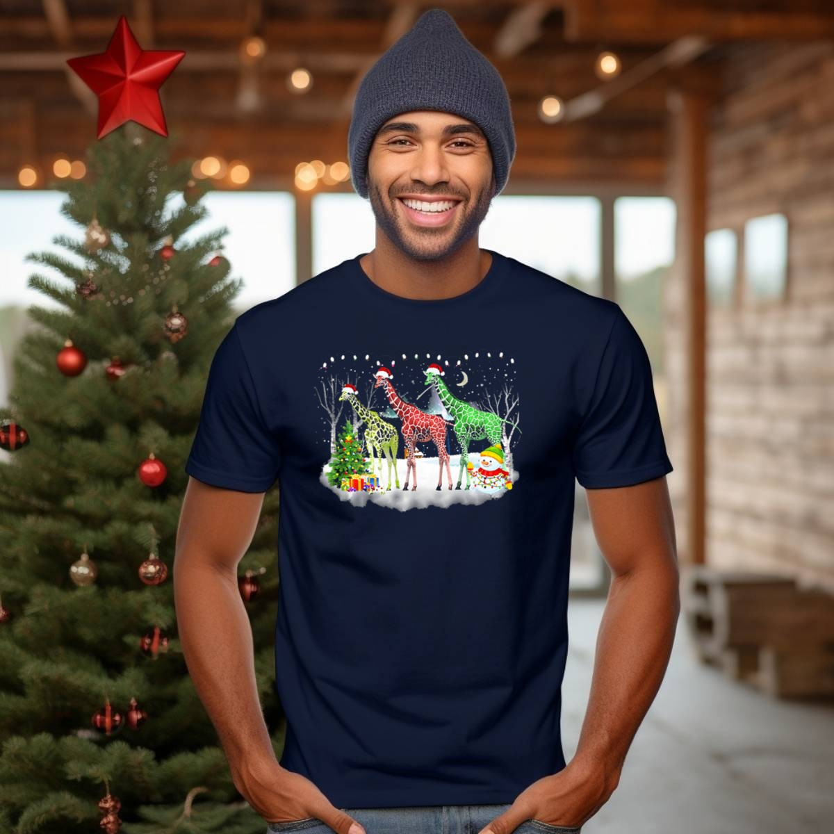 Be the first to review “Giraffes With Santa Hats And Christmas Lights In Winter Scene T Shirt”