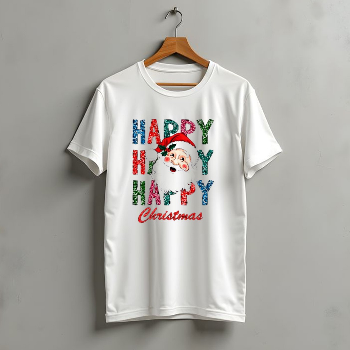 Glitter Happy Happy Happy Christmas Santa Claus T-Shirt
