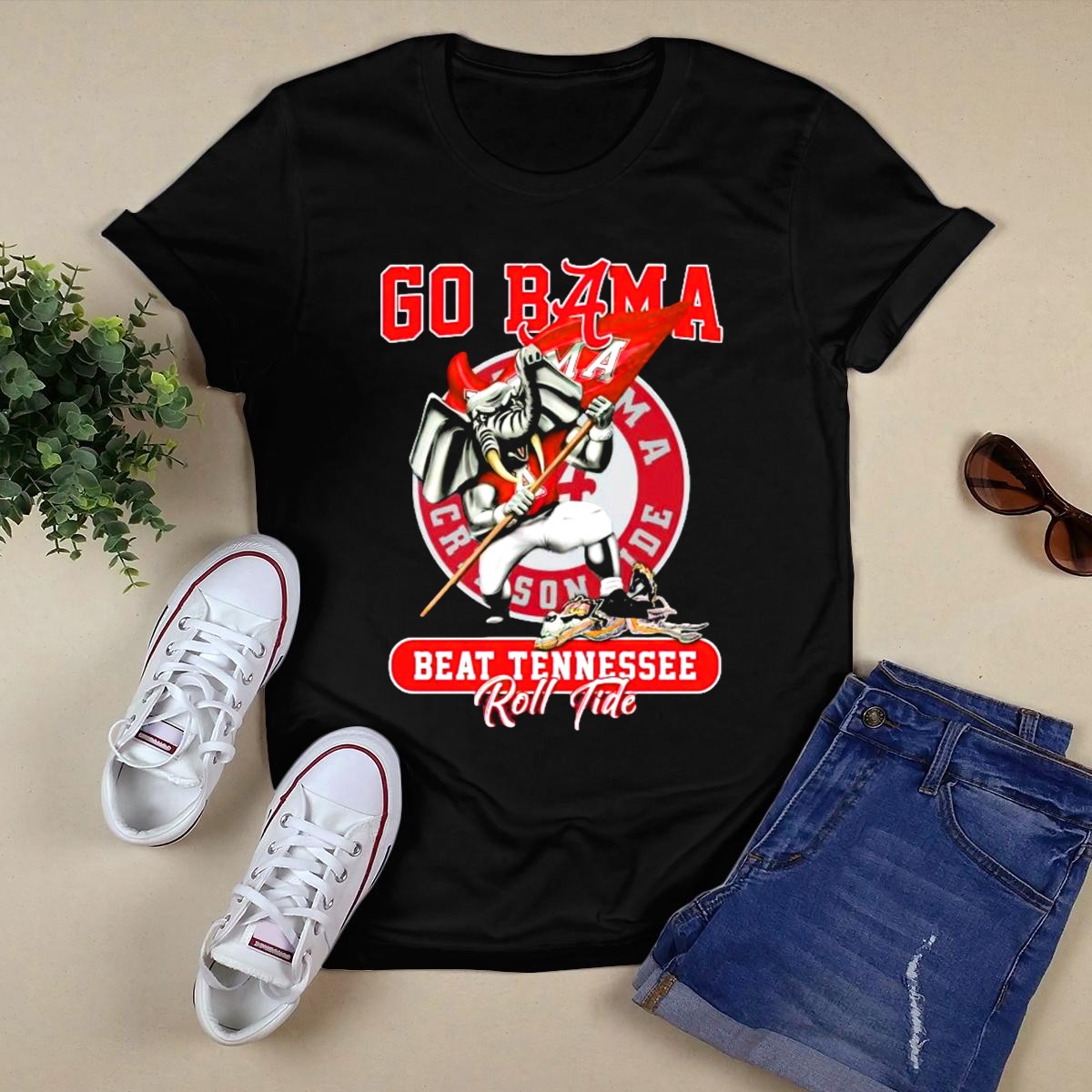 Show your unwavering support for the Alabama Crimson Tide with our GO BAMA BEAT TENNESSEE T-shirt! This fan-made design is perfect for die-hard fans who want to showcase their team spirit during game days, themed events, or casual outings. Crafted from high-quality materials and printed in the USA, this shirt combines comfort and style, making it a must-have for any Alabama supporter looking to cheer on their team in style.