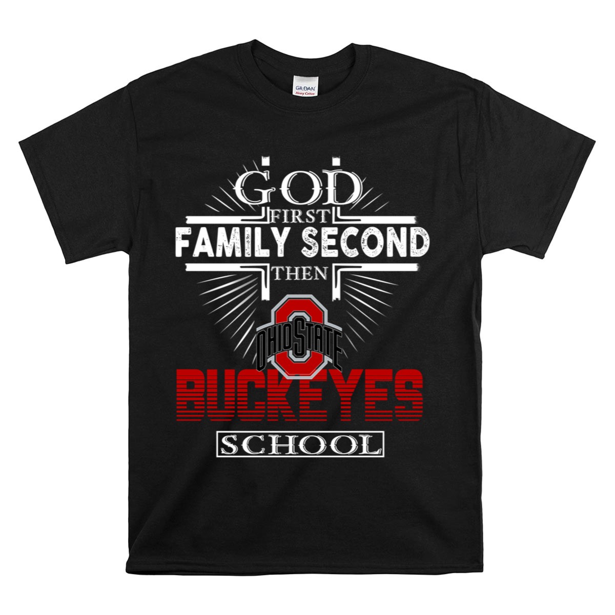 Show your unwavering support for the Ohio State Buckeyes while keeping your priorities straight with our “God First Family Second Then Ohio State Buckeyes” T-shirt. Perfect for die-hard fans and casual wearers alike, this shirt is an ideal choice for game days, family gatherings, or just hanging out with friends. The unique fan-made design printed in the USA showcases your love for both faith and family, making it a standout addition to any Buckeyes supporter’s wardrobe.