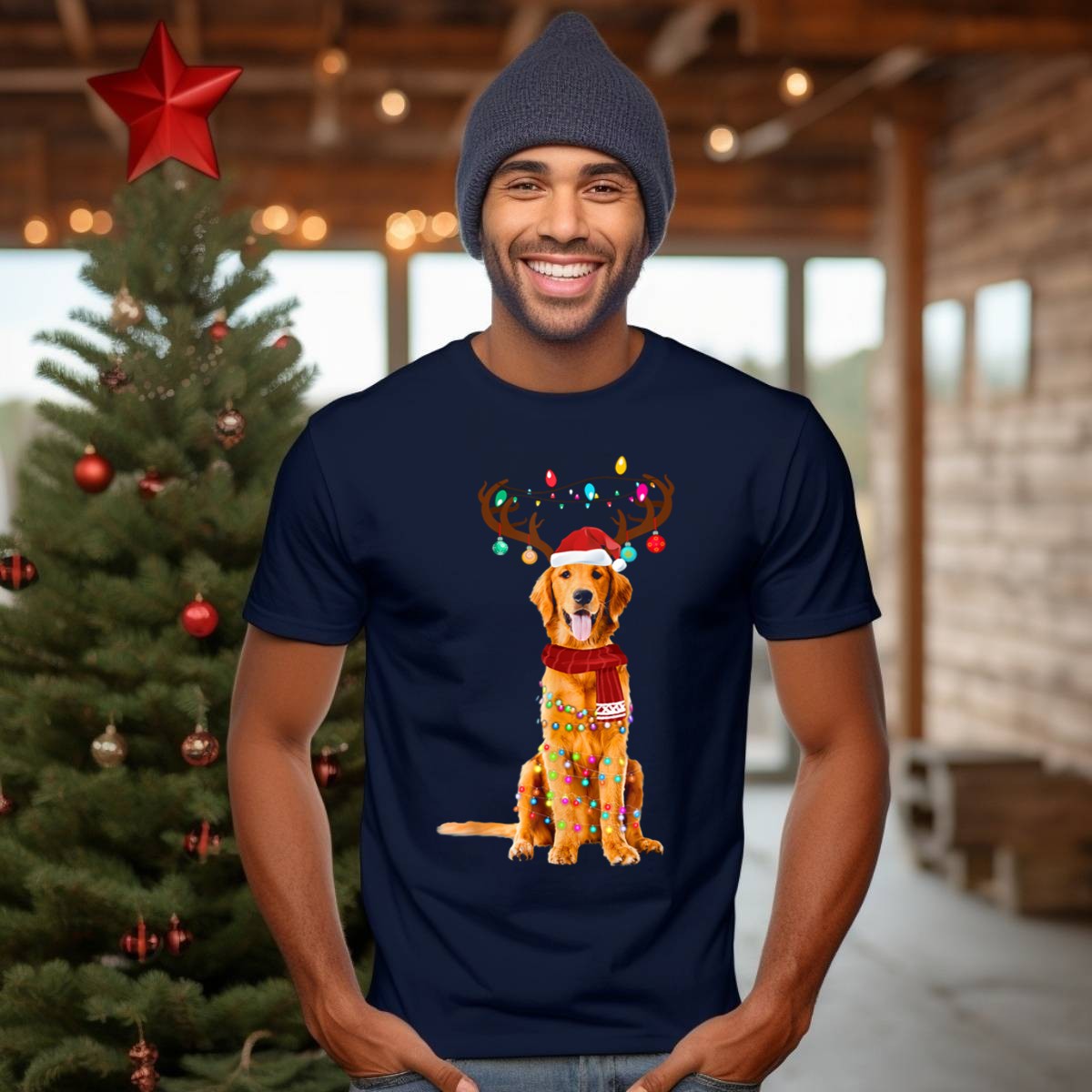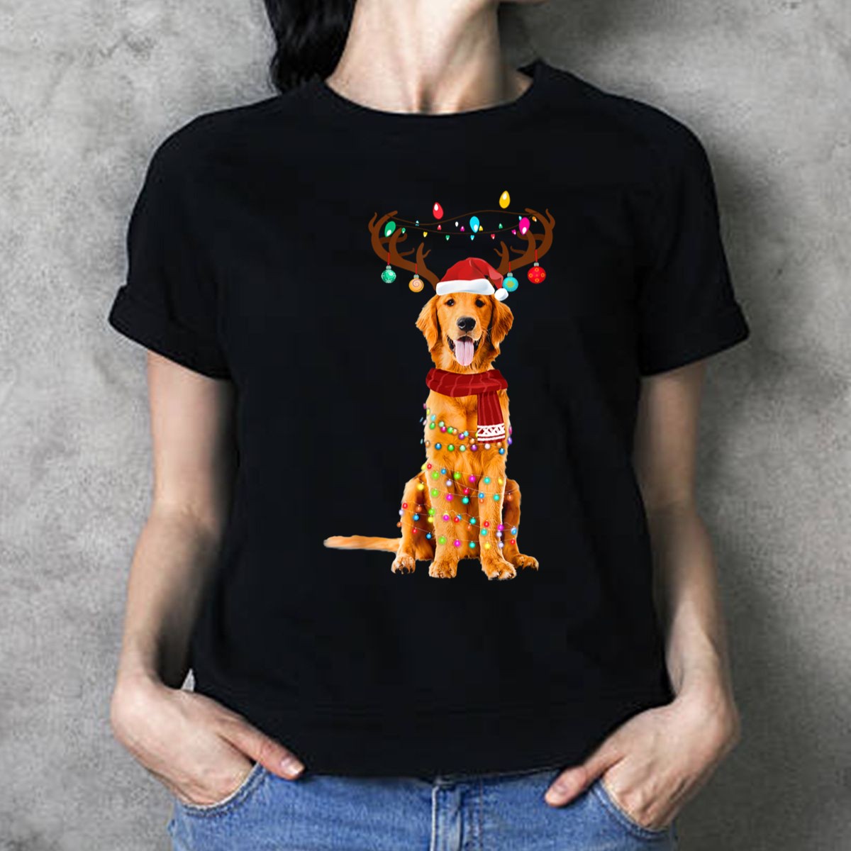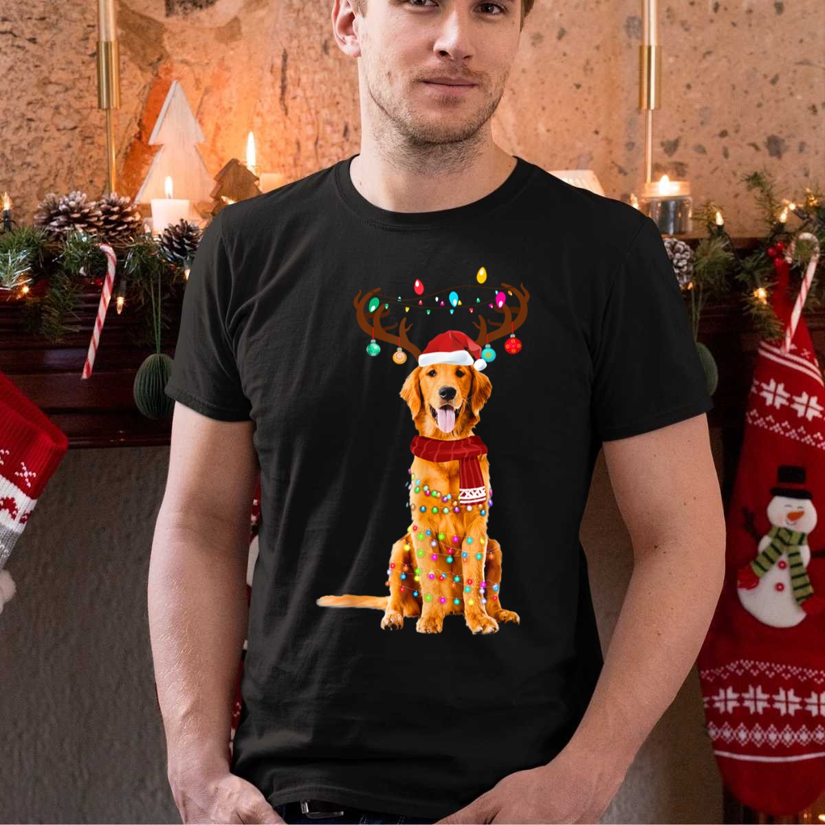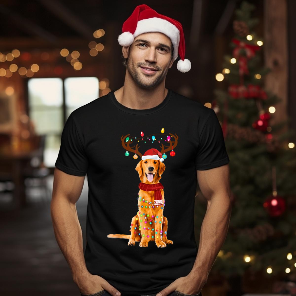 Celebrate the holiday season with our delightful Golden Retriever Christmas Lights T-Shirt, perfect for dog lovers and festive spirits alike. This charming design features an adorable golden retriever adorned with reindeer antlers, a Santa hat, and a cozy scarf, making it an ideal choice for casual wear, themed events, or simply spreading cheer during daily outings. Crafted for comfort and style, this fan-made design is printed in the USA, ensuring you stand out in the most joyful way.