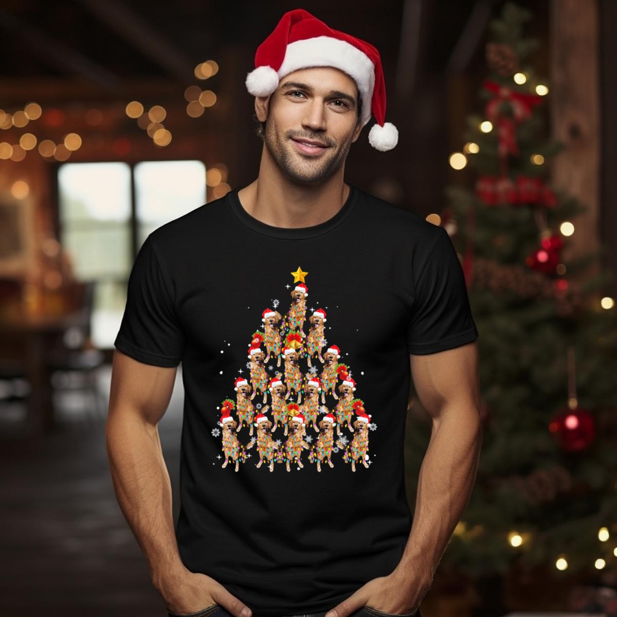 Celebrate the joy of the season with our Golden Retriever Christmas Tree T-shirt, designed for dog lovers and holiday enthusiasts alike! This festive tee features an adorable graphic of golden retrievers surrounded by a Christmas tree adorned with Santa hats and colorful lights, making it the perfect choice for casual wear, themed events, or just spreading holiday cheer throughout the day. Made for comfort and style, this shirt is a must-have addition to your winter wardrobe!
