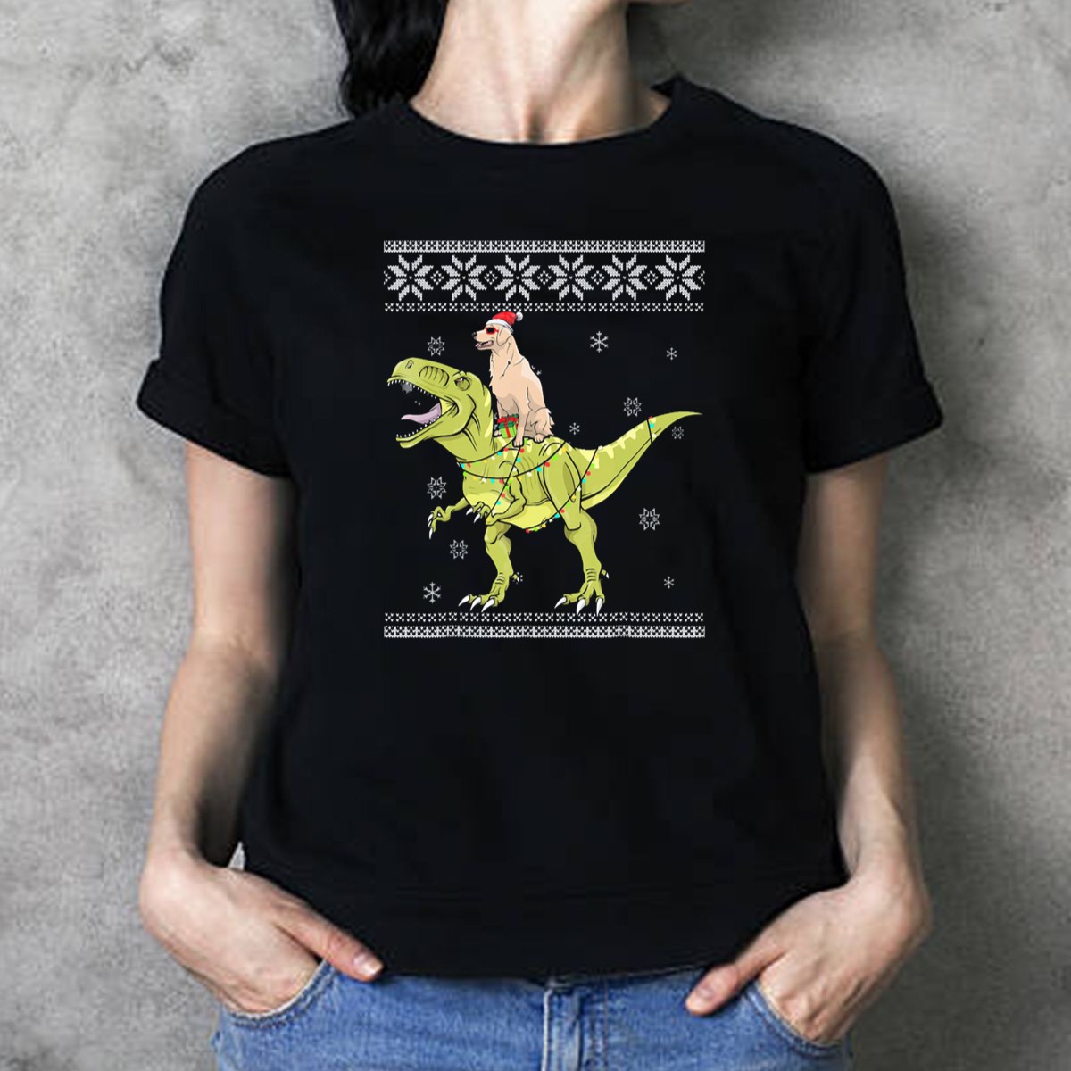 Get ready to turn heads this holiday season with our Golden Retriever In Santa Hat Riding T Rex With Christmas Lights T-Shirt! Perfect for dog lovers and dinosaur enthusiasts alike, this whimsical design is sure to spread cheer at casual gatherings, themed events, or your daily outings. Made for those who love to combine humor with festive spirit, this fan-made shirt brings a unique flair to your wardrobe, all while being printed right here in the USA.