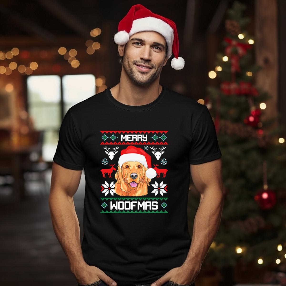 Celebrate the holiday season with our Golden Retriever Merry Woofmas T-Shirt, perfect for dog lovers who want to spread some festive cheer! This fun and playful design features a charming golden retriever donning a Santa hat, making it an ideal choice for casual wear, themed events, or simply showing off your love for pets during the holidays. Made and printed in the USA, this shirt combines comfort and style for a unique addition to your wardrobe.