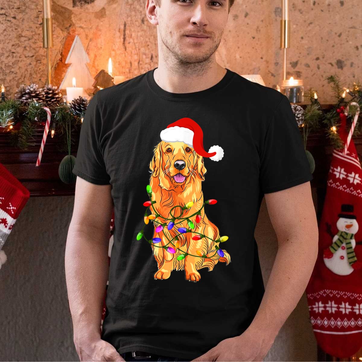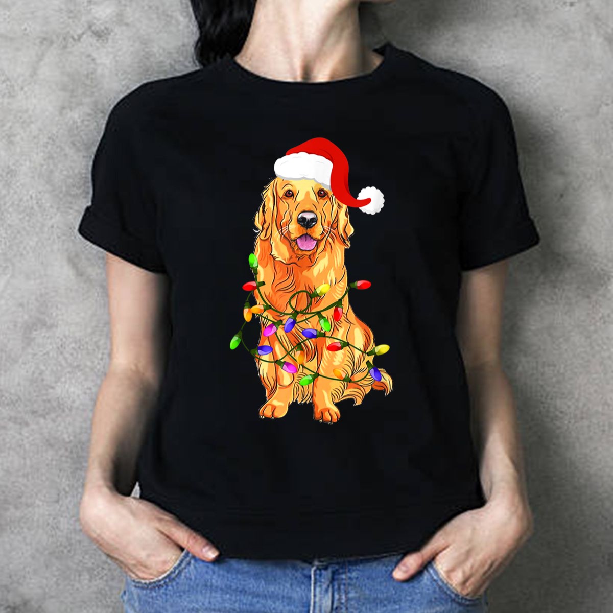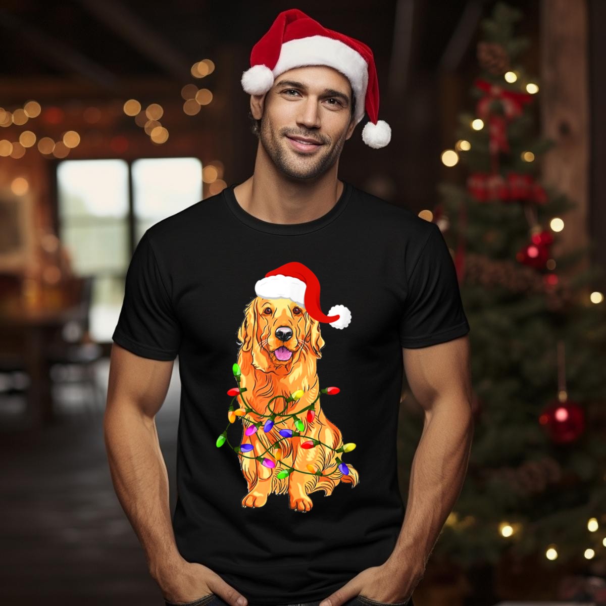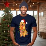 Celebrate the holiday season with our Golden Retriever Santa Christmas Lights T-Shirt! Perfect for dog lovers and festive fans alike, this charming tee features a playful design that showcases a jolly golden retriever surrounded by twinkling Christmas lights. Ideal for casual outings, themed events, or simply spreading holiday cheer during your daily wear, this shirt is sure to become a cherished part of your seasonal wardrobe. Made with care in the USA, it’s a unique and fun way to show your love for the holidays and man’s best friend!