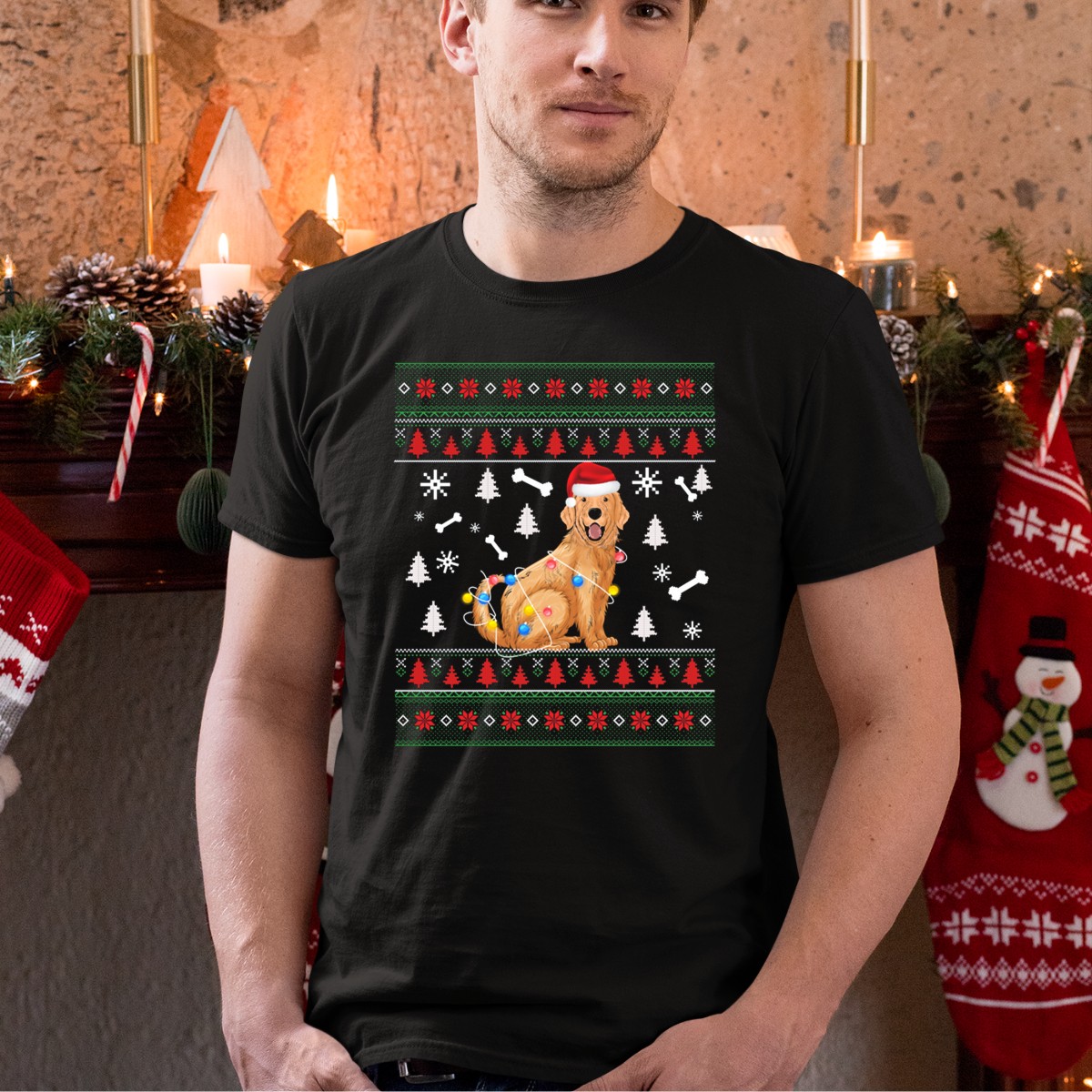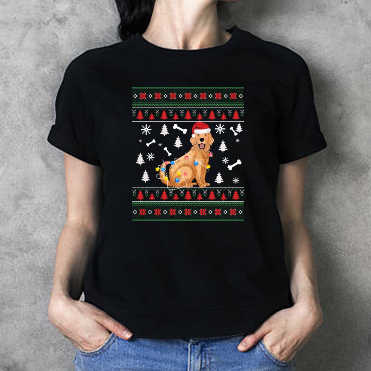 Embrace the festive spirit with our Golden Retriever Santa Hat Christmas Lights Ugly T-Shirt! Perfect for dog lovers and holiday enthusiasts alike, this fan-made design features an adorable golden retriever sporting a Santa hat, surrounded by cheerful Christmas lights. Ideal for casual wear, themed events, or just spreading joy during the holiday season, this shirt is sure to make you the life of the party. Printed in the USA, it combines style with comfort for all your festive gatherings!
