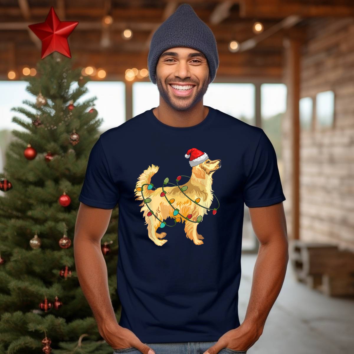Celebrate the festive season with our delightful Golden Retriever With Christmas Lights And Santa Hat T-Shirt! Perfect for dog lovers and holiday enthusiasts alike, this fan-made design brings joy and cheer to any casual occasion. Whether you’re attending a themed event, spending time with friends, or just enjoying a cozy day at home, this shirt is sure to spread smiles and warmth. Printed in the USA, it combines comfort with a playful spirit that captures the essence of the holidays.