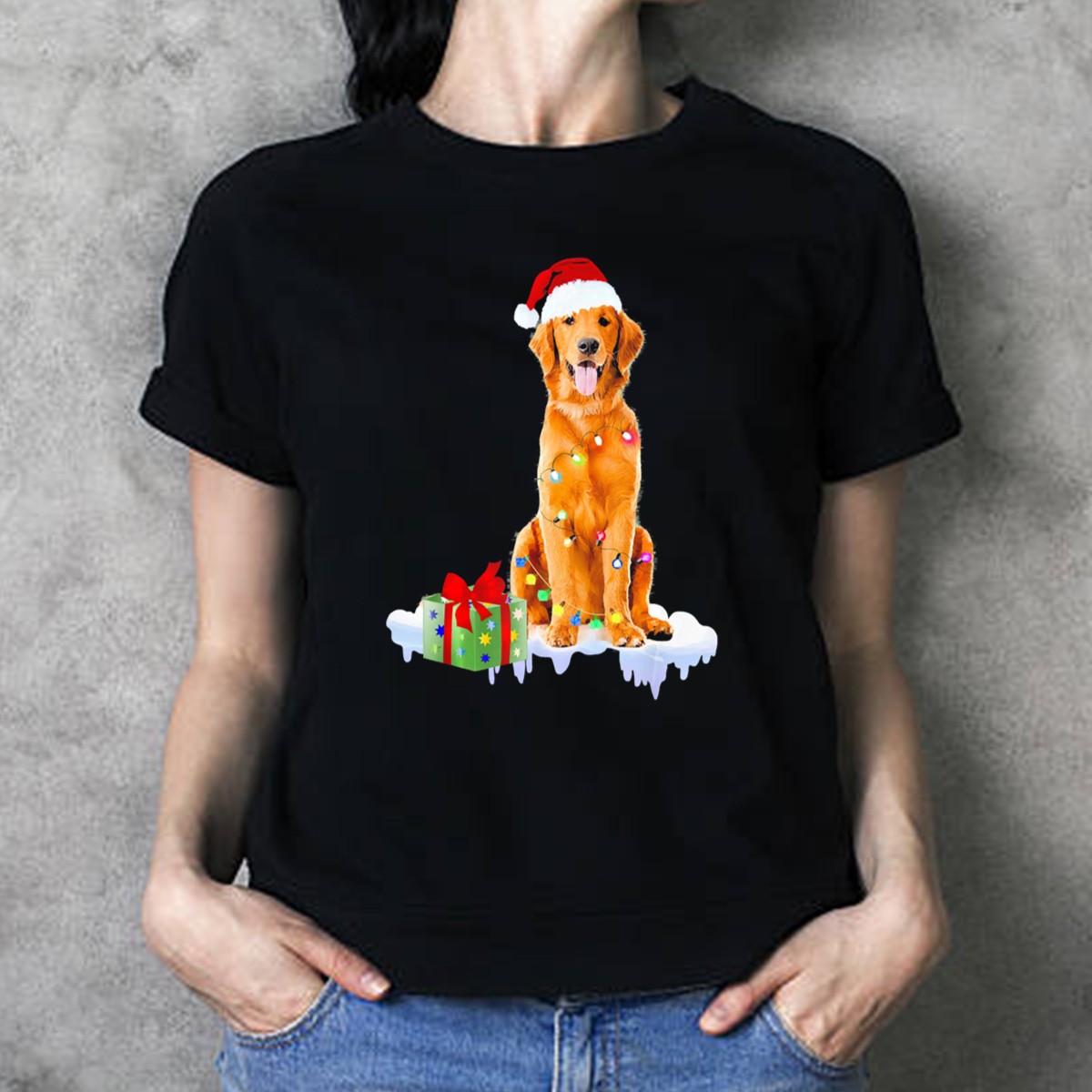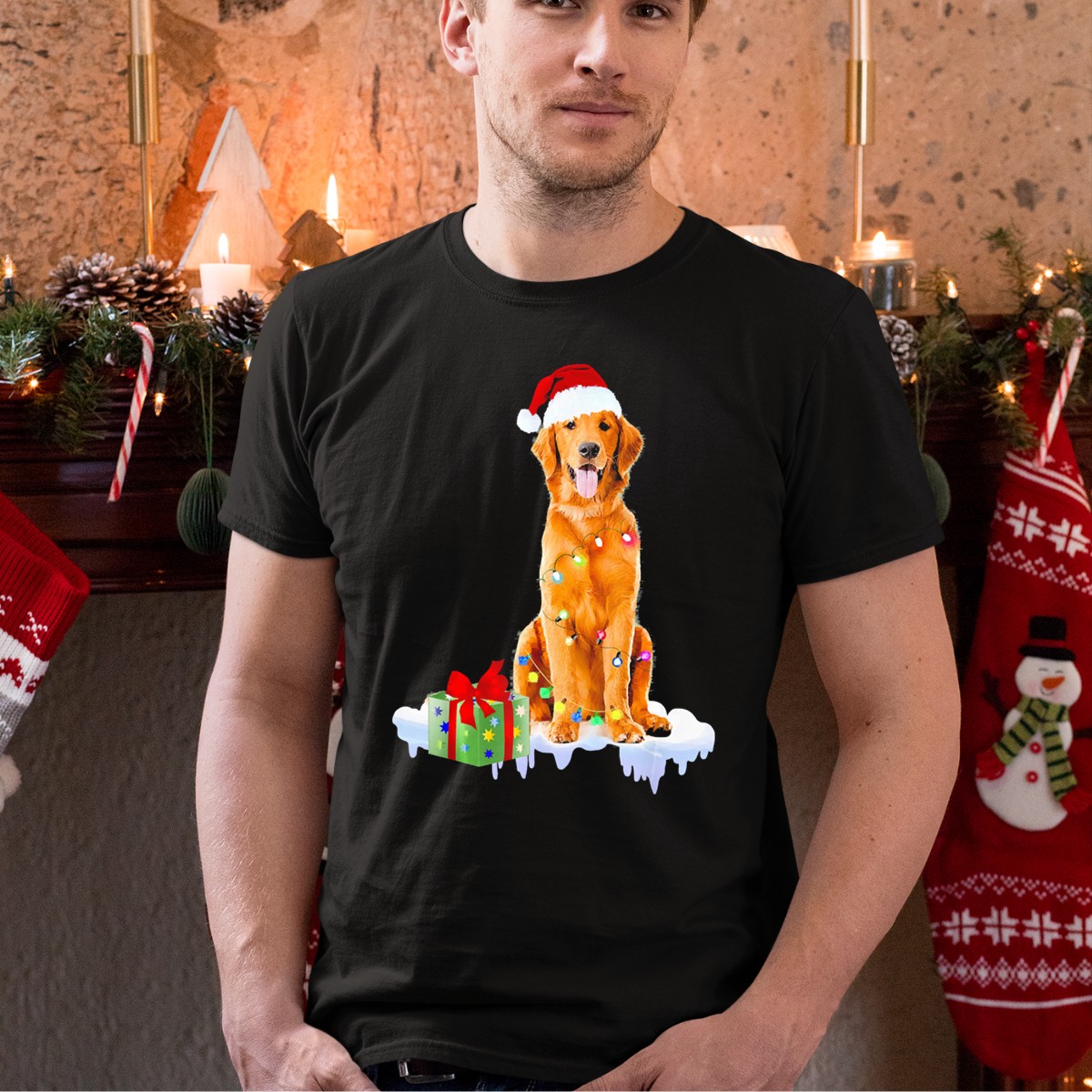 Celebrate the joy of the holiday season with our Golden Retriever Wrapped In Christmas Lights With Santa Hat And Present T-Shirt! Perfect for dog lovers and festive gatherings, this fan-made design adds a playful touch to your casual wear. Whether you’re attending a themed event, enjoying a cozy family gathering, or simply spreading holiday cheer, this shirt is sure to bring smiles and warmth. Printed in the USA, it combines comfort with a fun, lighthearted theme that showcases your love for your furry friend.